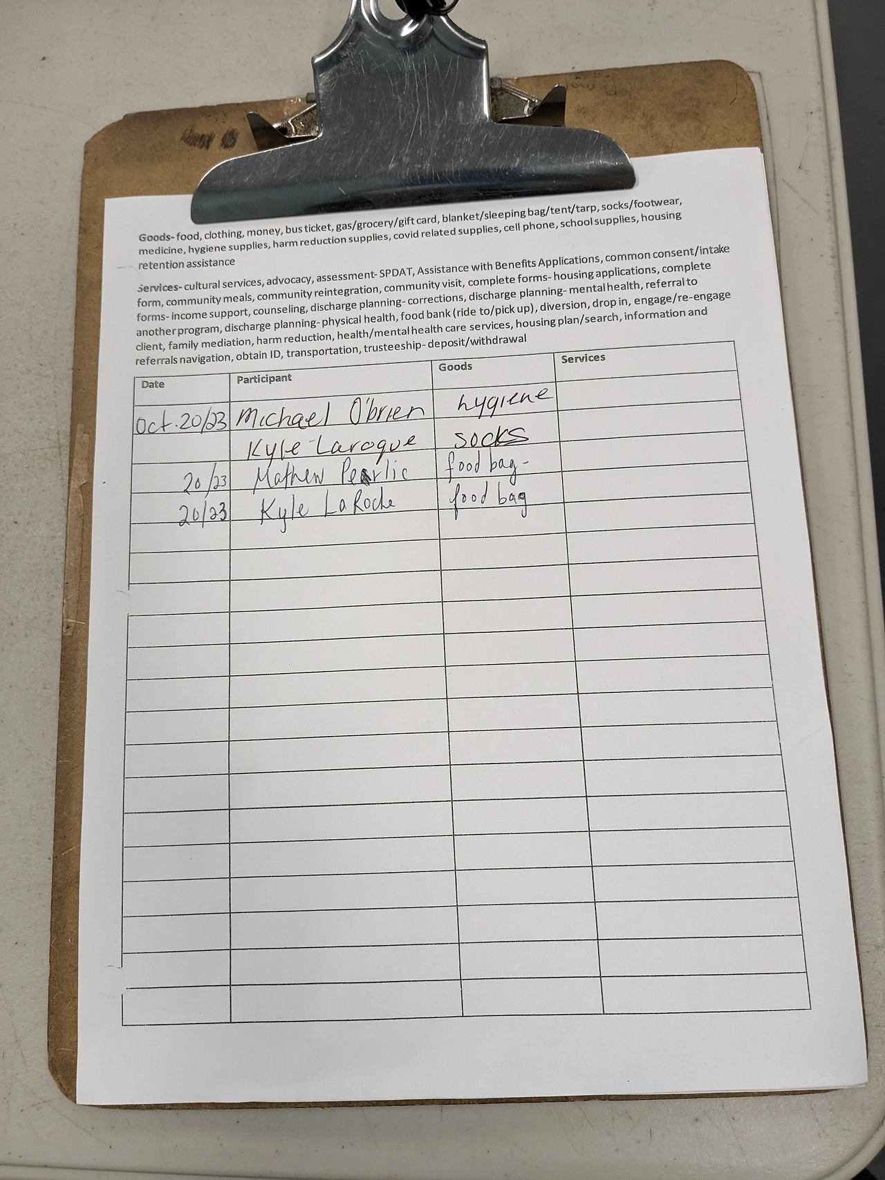 샤워실 앞에는 순서를 기다리는 사람들의 명단이 놓여 있고, 스태프들은 그날 들어온 기부물품을 정리하거나 간단한 청소를 하며 바쁘지 않게 하루를 정돈한다.
