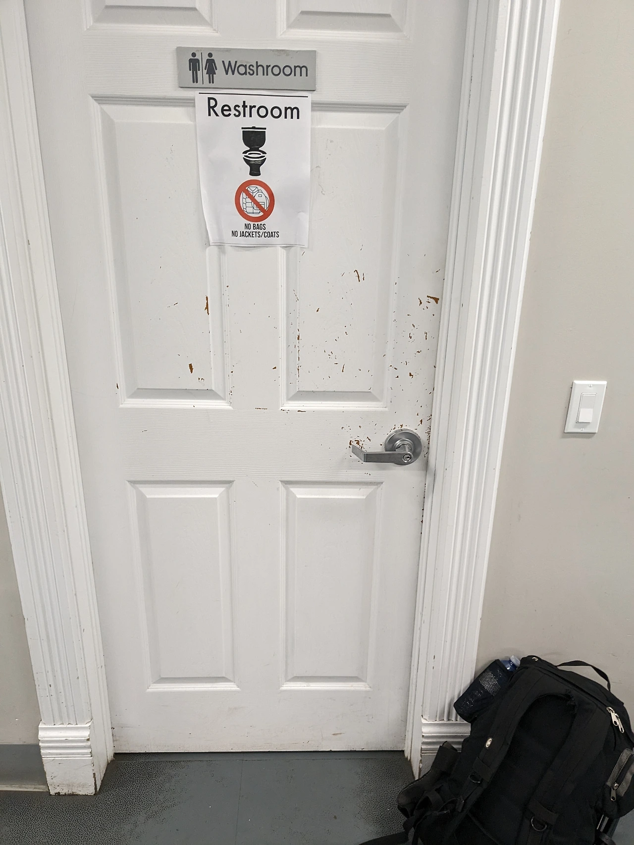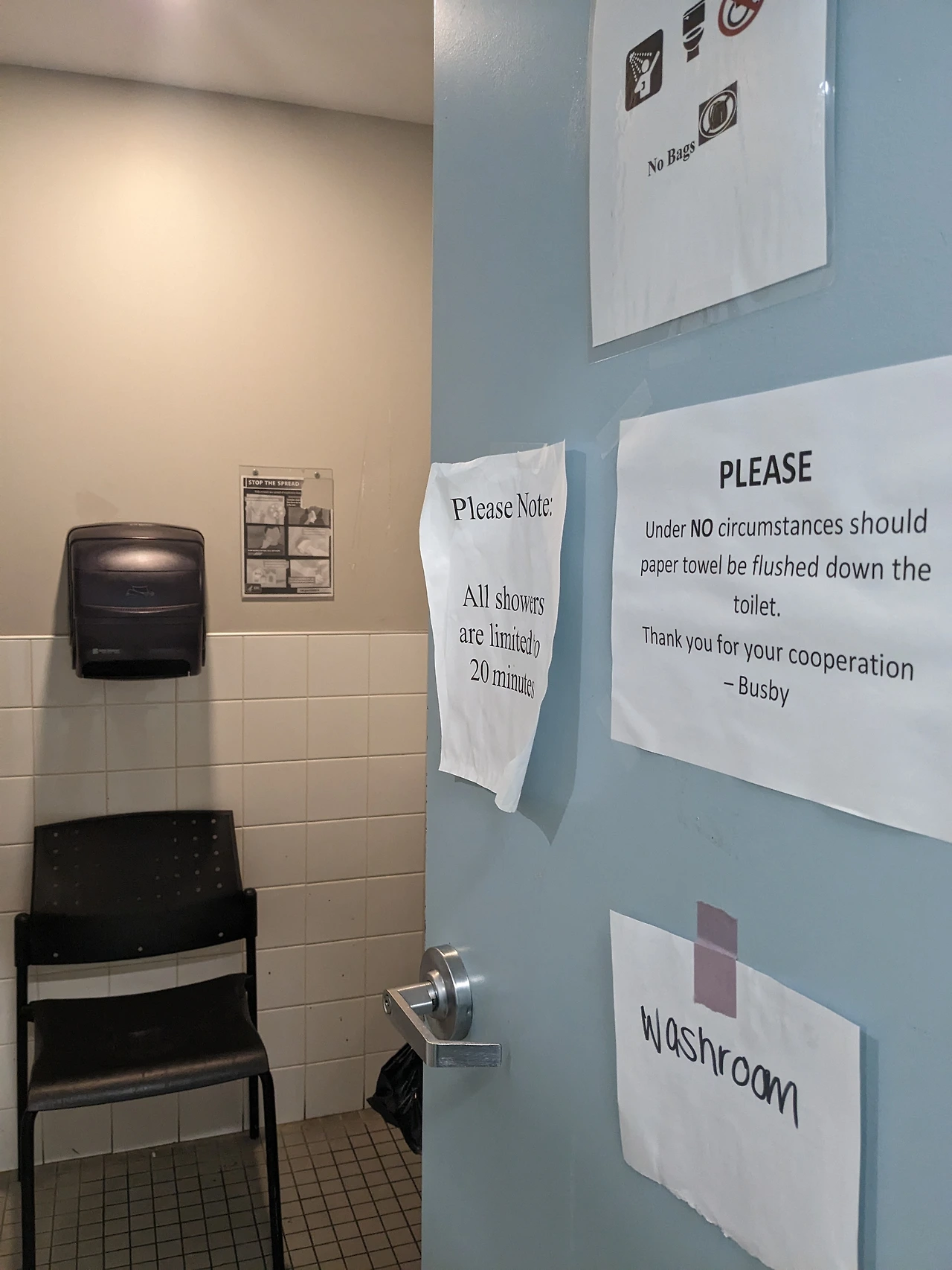 화장실을 사용할 때는 외투나 가방을 가지고 들어갈 수 없다. 이는 센터의 엄격한 규칙 중 하나로, 이용자들은 화장실 입구에 외투와 가방을 모두 내려놓고 입실해야 한다. 간혹 외투나 가방 속에 금지 물품을 숨겨 들어갈 위험이 있기 때문이다. 안전하고 쾌적한 센터 운영을 위해 꼭 지켜야 하는 규정이다.