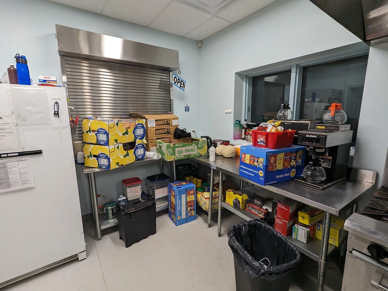 푸드뱅크나 지역 빵집, 슈퍼마켓에서 남은 물품들을 정기적으로 기부해 주는 덕분에 이용자들은 간식이나 아침 식사로 다양한 먹거리를 접할 수 있다.