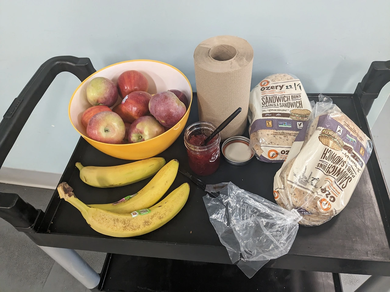 간단하면서도 속을 든든히 채울 수 있는 메뉴로, 바나나, 사과 같은 손쉽게 나눌 수 있는 과일과 머핀, 베이글, 식빵, 크루아상 등이 준비된다.