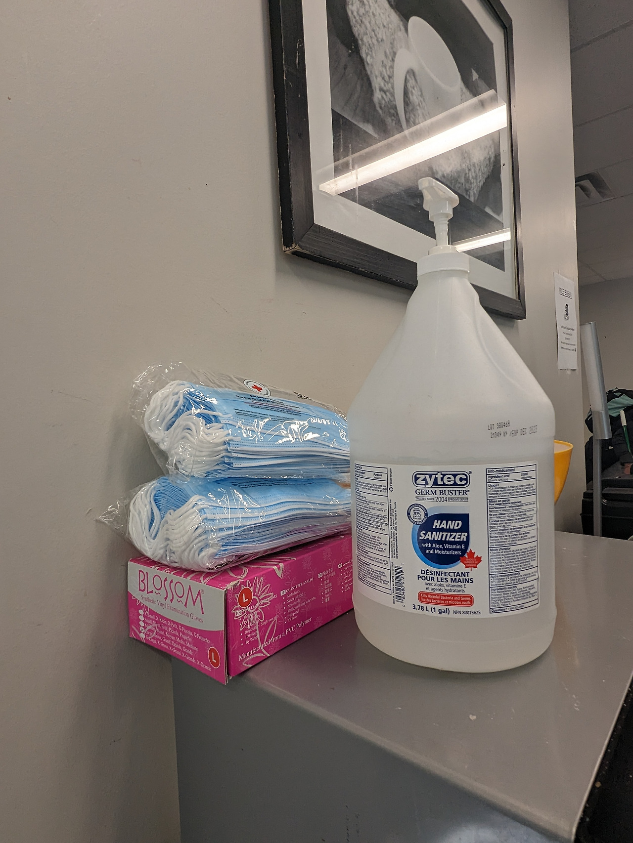손소독제는 패밀리 사이즈, 일회용 알코올솜은 생필품. 한국보다 더 깔끔하다.