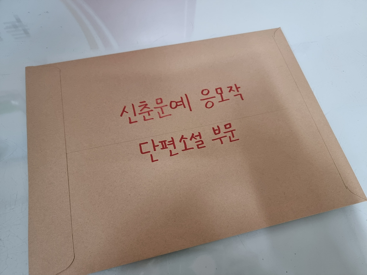 준비된 문서를 인쇄해서 서류 봉투에 담는다. 그리고 우체국에 가서 신문사에 부친다. 서류 봉투는 우체국에서 100원에 샀고, 빨간 매직도 우체국에 있었다. 인터넷 응모는 불가능하다. 이런 아날로그적인 제출은 처음이라서 떨렸다.