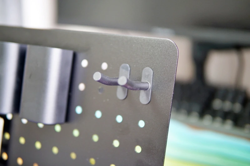 벨레 책상 정리함의 구성품은 타공 된 보드판, 그리고 물건을 담을 선반, 컨테이너, 훅이 제공됩니다.