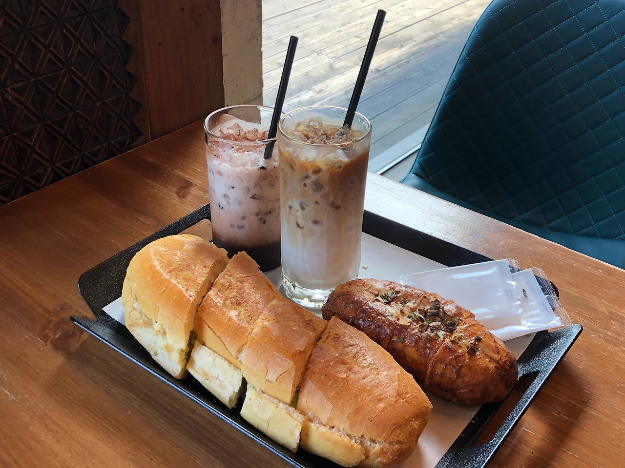 카페라떼, 리얼초코라떼, 명란 바게트, 바게트 샌드위치 먹었어요!