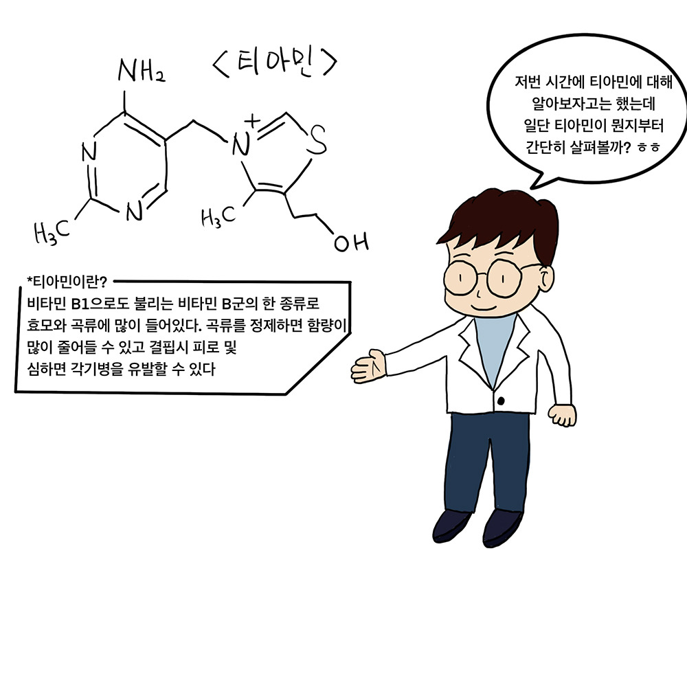 오늘은 비타민B군의 한 종류인 '티아민'에 대한 이야기를 가져왔어요.