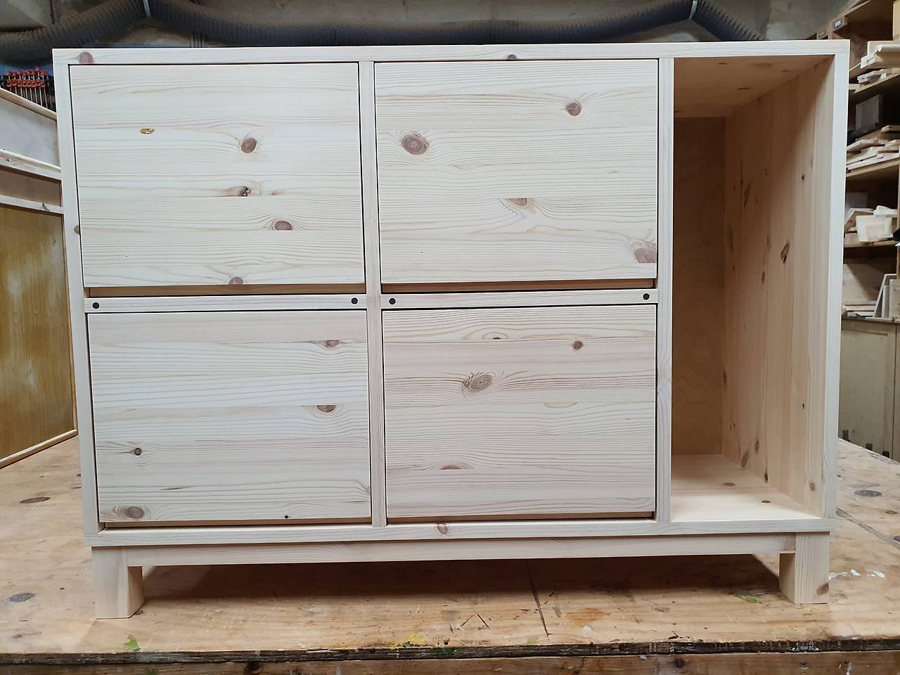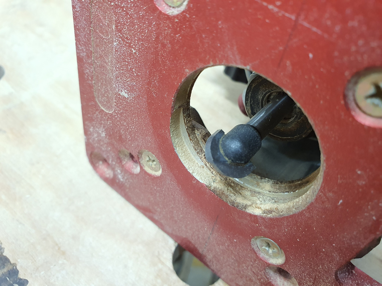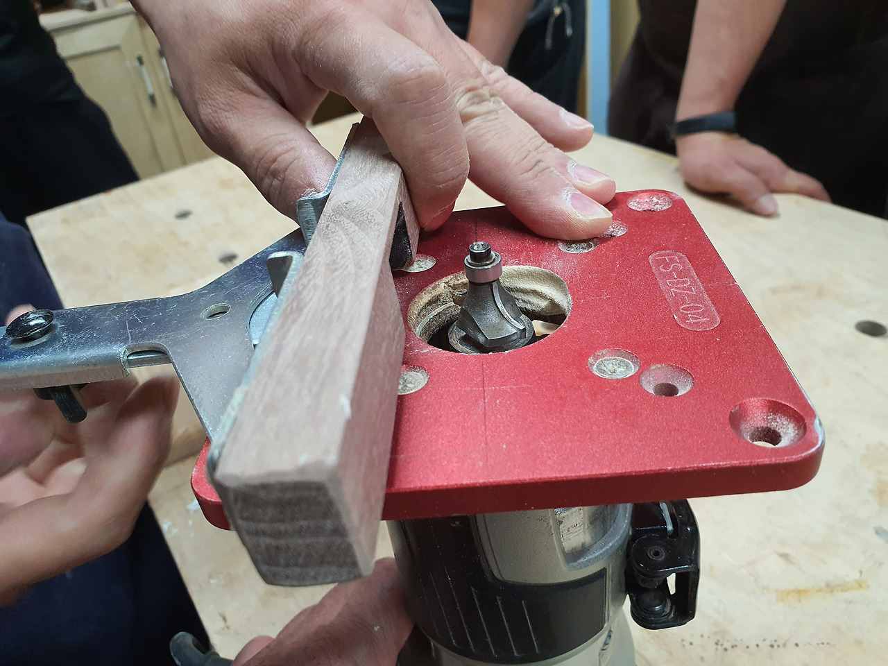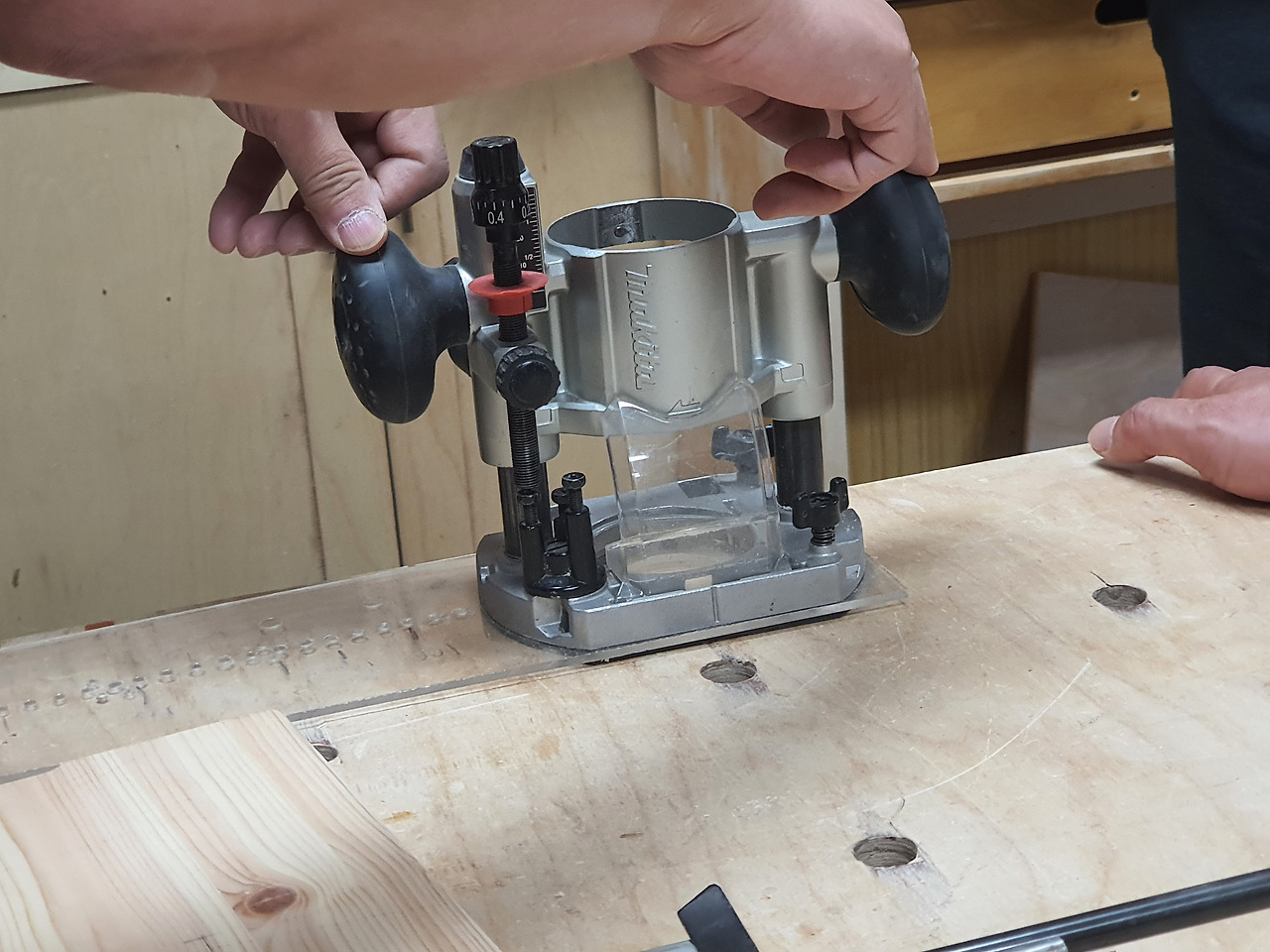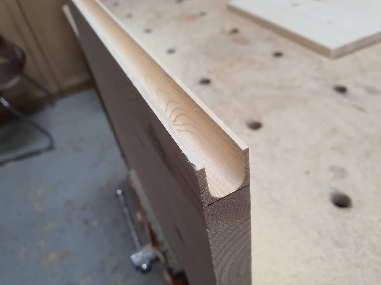 둥근 머리 비트를 이용한 홈 파기. 여러 번 작업해 돌출되지 않는 서랍 손잡이를 완성헸다.