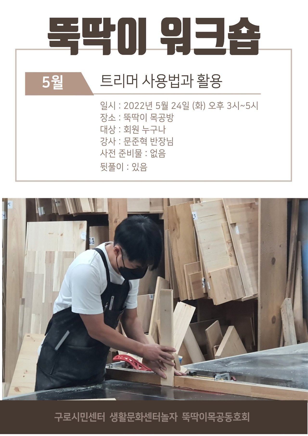 목재를 가공하는 목공 기계와 공구는 수없이 많다. 다 각각의 기능과 역할이 있다. 어느 것 하나 불필요한 일을 수행하지 않는다. 트리머는 이 여러 공구들이 협동해서 만들어낸 작업물에 미적 가치를 부여한다. 그 이름처럼 다듬고, 둥글게 만들고, 홈을 파서 새로운 감각을 불어 넣는 것이다. 자르고 조이고 붙여서 만들어진 사각형이 비로소 다듬어져 완성되는 순간이다. 마치 마법 같은 가위손이 스친 듯 말이다.