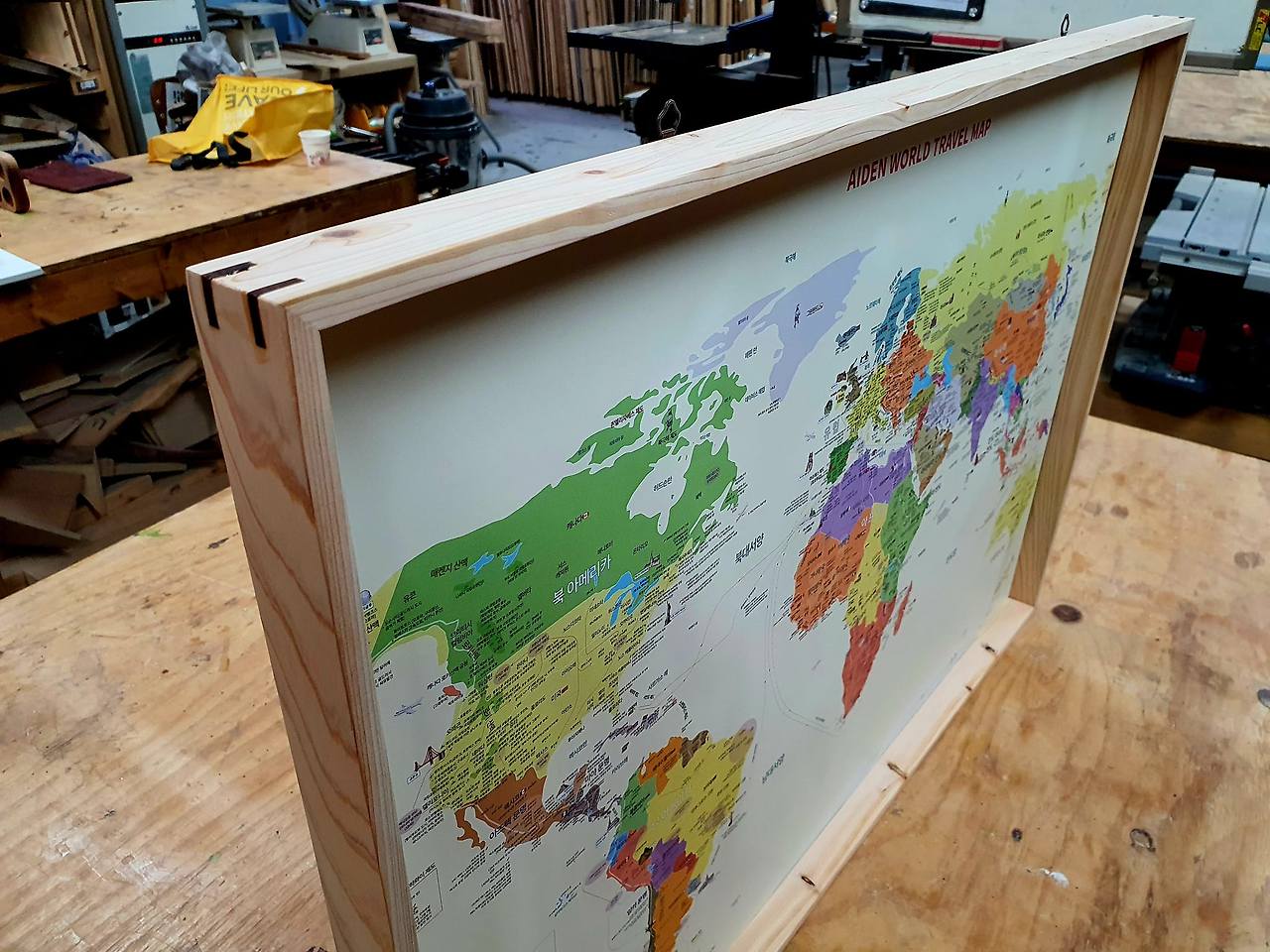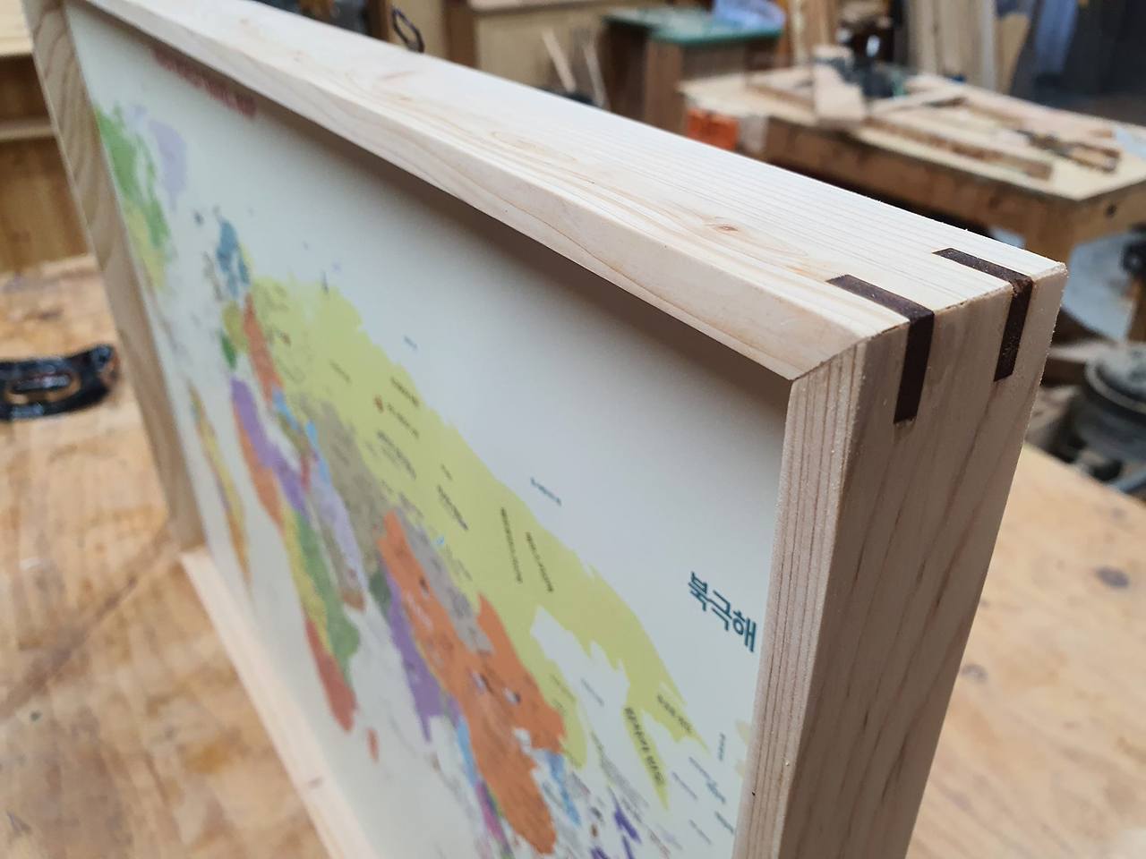 목공을 할 때는 ‘편백(扁柏’)과 ‘히노끼(ひのき)’라는 말이 모두 쓰인다. ‘편백’은 이파리가 납작하게 생긴 모습에서 유래한 이름이고 ‘히노끼’는 ‘불의 나무’라는 뜻으로 옛날 일본에서 불을 피우는데 이 나무를 사용했다는 쓰임새에서 유래한 이름이다. 편백나무 판재를 길게 재단해서 아들방에 걸어줄 여행지도 액자를 만들었다. 지도만 사놓고 차일피일 미루다 동안 어떤 나라는 이름이 바뀌기도 했다. 더 이상은 미룰일이 아니다 싶어 부랴부랴 작업을 마쳤다. 액자의 지도를 물끄러미 보고 있자니 괜스레 나무의 여정(旅程)에 생각이 닿는다.