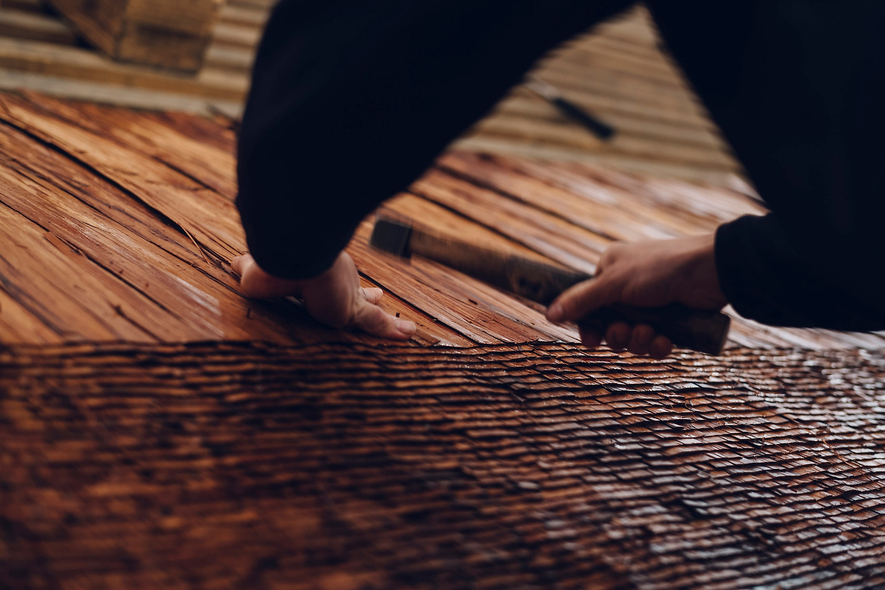 두 번째로 보려고 하는 것도 청수사 본당에 있다. 이번에는 무대를 받치는 기둥이 아니고 지붕이다. 이 여행을 준비하면서 찾아본 청수사의 사진이 인상적이었는데 그중 가장 호기심이 드는 것이 지붕이었다. 일본의 국보이기도 하고 유네스코 문화유산으로 지정된 고찰의 지붕이니 멋진 장식을 한 기와를 상상했지만 청수사의 지붕은 사진만으로는 뭔지 알기 어려웠다. 이 신기한 지붕에 얹은 재료는 다름 아닌 ‘히노끼의 껍질(檜皮)’이라고 했다. ‘히노끼(,ひのき)’는 우리나라에서는 '회목', '노송나무'라고도 부르지만 일반적으로 알려진 이름은 ‘편백’, ‘편백나무’다. 이 ‘히노끼(,ひのき)’의 껍질을 얇게 떠서 핀 후에 75센티 길이로 잘라 켜켜이 붙여서 지붕을 만들었다는 것이다. 일본에는 ‘스기(スギ, 삼나무)로는 배를 만들고, 히노끼(ひのき, 편백)로는 집을 짓는다’는 속담이 있을 정도로 건축에 ‘히노끼’를 많이 사용한다. 이 ‘히노끼 껍질 지붕’을 실물로 보려는 생각에 걸음이 빨라졌다.