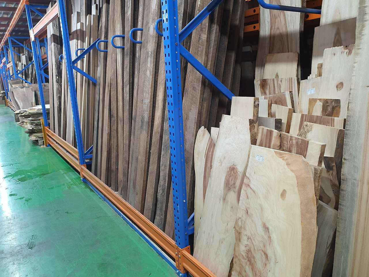 우리가 도착한 곳은 경기도 용인에 있는 목재소다. 도마를 만들 수 있는 나무들을 잘 정리해서 진열해 놓은 곳이다. 나무의 종류가 다양하고 고르기 좋게 진열이 되어 있어서 공방 회원들과 자주 찾는다. 이것저것 나무 구경을 하다 보면 한두 시간은 금방이다. 헌데 옹이가 없고 갈라짐이 없으며 잘 말라있는 도마재를 찾아내는 게 쉬운 일은 아니다. 이미 좋은 것은 더 일찍 온 사람들이 차지하는 때도 있고 항상 같은 품질의 나무가 있는 게 아니기 때문이다. 오늘은 ‘캄포’와 ‘올리브’는 몇 점 되지 않고 질도 좋지 않다. 대신 느티나무가 크기도 큼지막하고 무늬도 좋은 것들이 나와 있다. 고르고 골라 ‘느티나무’ 도마재 몇 개와 ‘편백’ 하나, ‘월넛’ 하나를 샀다. 물욕은 없는 인생 같았는데 이곳에 오면 달라진다. 맘껏 나무 쇼핑을 하다 보면 가산탕진이 현실이 될 수 있으니 자제해야 한다. 찜통에 소음을 견디면서까지 이곳에 오는 이유다.