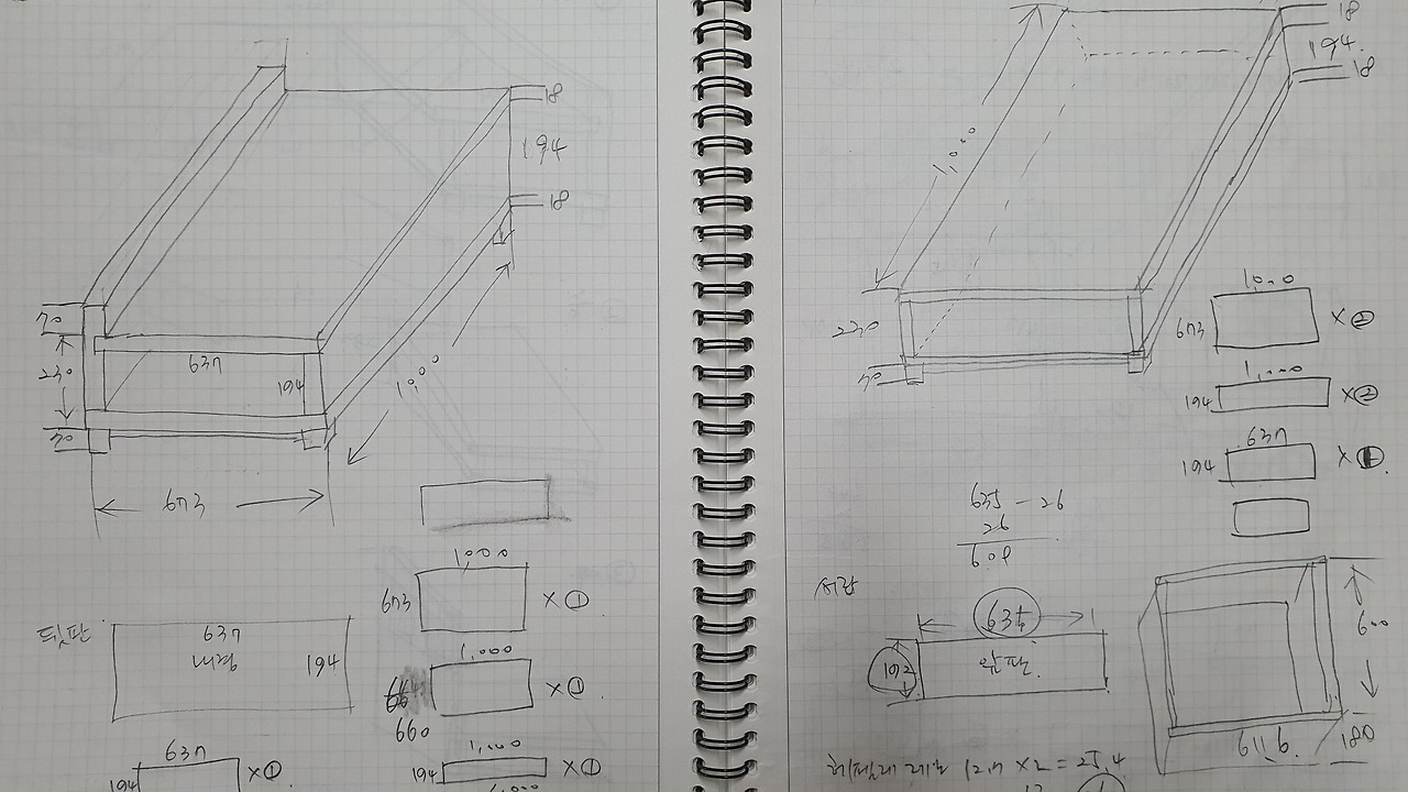 침대 프레임에는 수납용 서랍을 만들기로 했다. 아무래도 방이 작아 수납이 많지 않으니 매트리스 아래 공간을 비워두는 일은 낭비다. 헤드 설치 문제를 며칠 고민했는데 좀 더 복잡한 작업이 생기더라고 꼭 하기로 마음먹었다. 헤드가 있으면 훨씬 더 침대다워 보이기 때문이다.