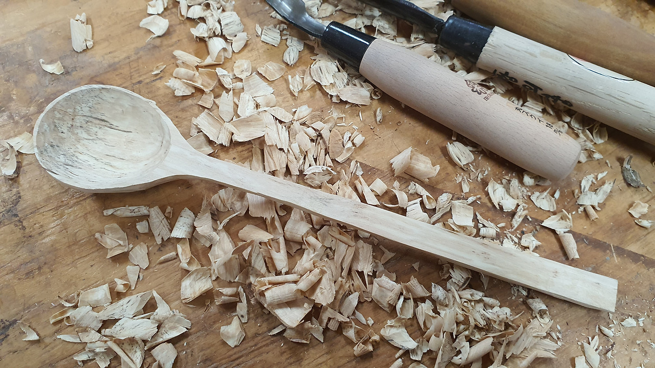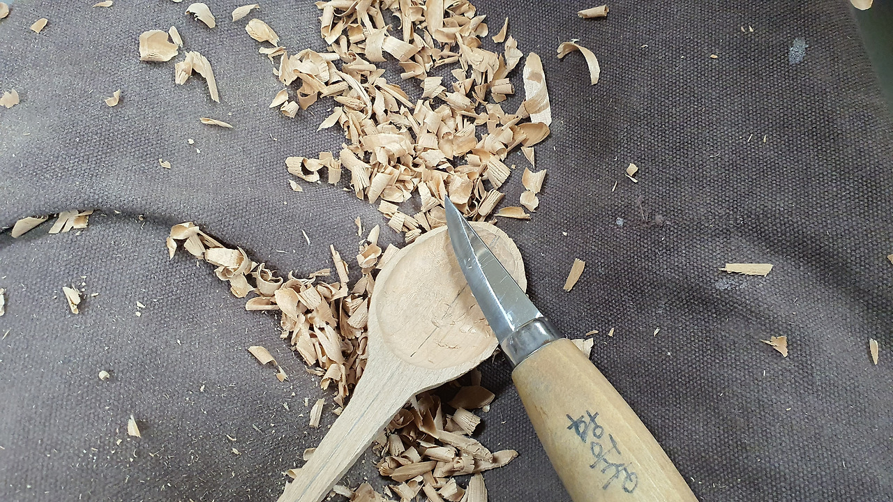 혼자 나무를 깎기 시작했다. 작은 칼과 조각도 따위를 가지고 숟가락이나 접시, 그릇 같은 소소한 생활재를 만드는 것이다. 나무를 이용한 조각의 일종인데 ‘우드 카빙(Wood Carving)’이라고 하는 외래어를 보통 사용한다. ‘목공’과는 무슨 차이가 있냐고? 목공은 적절한 연장이나 기계를 적극적으로 사용해 원목 가구나 기물을 만드는 것이라면 ‘카빙’은 말 그대로 조각에 가깝다. 작은 칼과 조각도 몇 자루를 이용해 깎고 다듬어 원하는 물건을 만들어 낸다. 목공이 연장을 다루는 능란한 작업이라면, 카빙은 손놀림으로 만드는 생활이다.