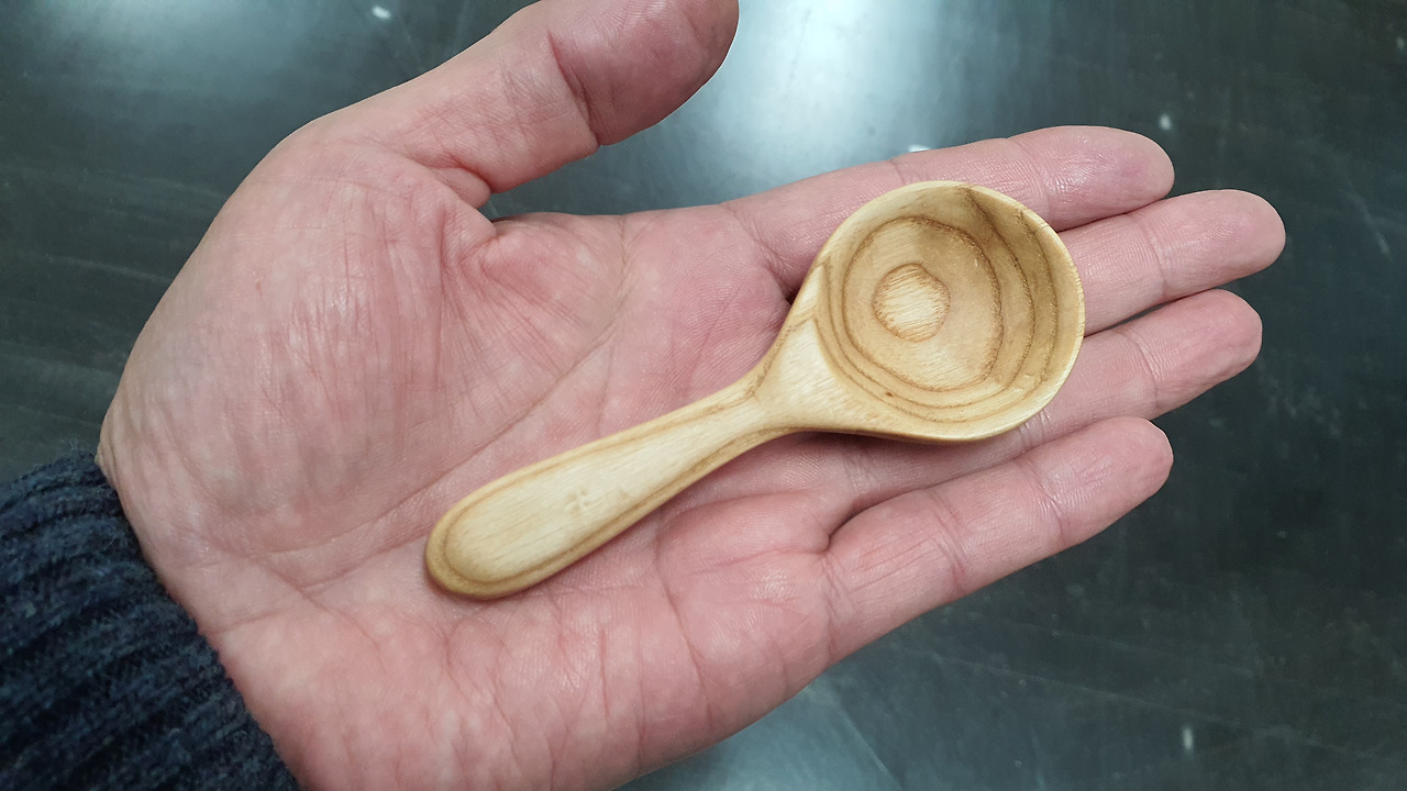 ‘지천명(知天命)’하고는 무슨 상관인 건가? 당연히 상관이 없다. 우드 카빙이 무슨 연령제한이 있는 것이 아니니깐. 다만 이건 지금의 나의 경우를 말하는 것이다. 단지 몇 차례 나무를 깎아본 것이 다 인데도 금방 알겠더라. 마음이 거친 날은 칼질도 거칠다. 심란한 날은 곧아야 할 수저 손잡이가 삐뚤빼뚤하고, 괜스레 들뜬 날은 조각도가 제멋대로 날아다닌다. 나무가 오랜 세월 켜켜이 쌓아 놓은 나이테에 방향을 맞추고, 풍파를 겪은 단단한 옹이는 살살 어루만지며 다듬어야 비로소 쓸모 있는 기물이 겨우 만들어진다. 그게 또 소소하기까지 하다. 그래서 나무를 다듬는 이 우드 카빙은 지천명의 가운데로 들어선 자신을 톱아보게 한다.
