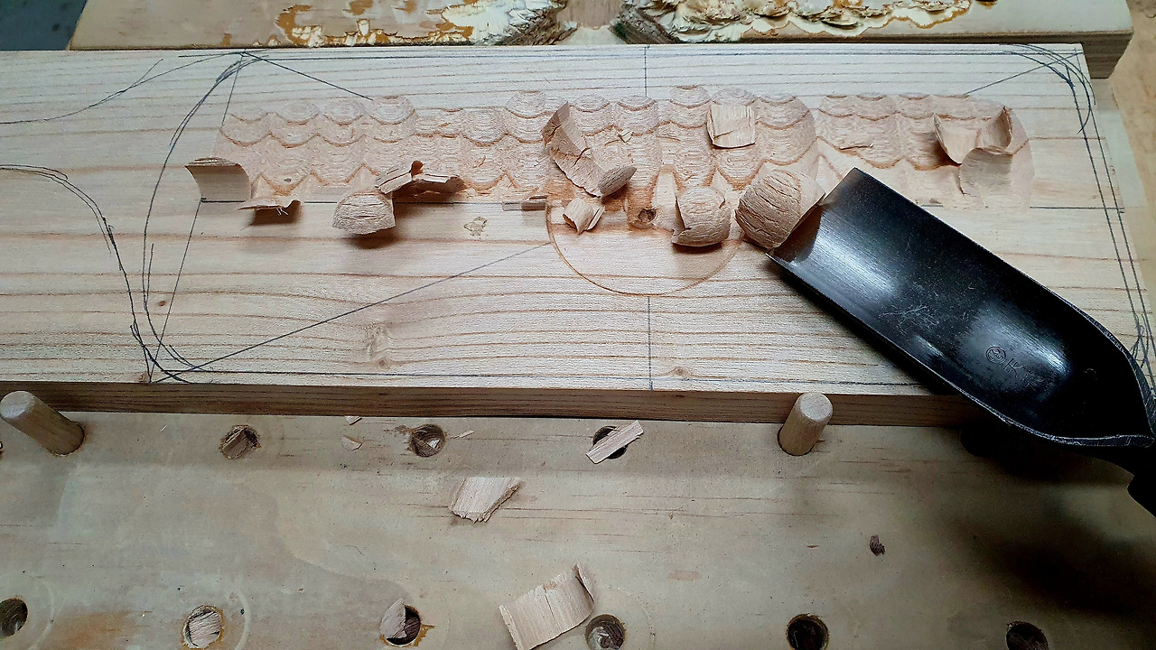 3. 처음에는 큰 조각도를 이용해 깊이를 맞추고 이후에는 아사도를 이용한 오목하지만 평이 잘 맞도록 작업해 주었다. 너무 많이 파내면 거기에 맞춰 전체 깊이가 깊어질 수 있으니 시간이 걸리더라도 조금씩 조금씩 작업해 주어야 한다.
