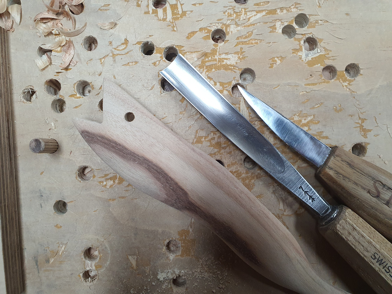 4. 조각도를 이용해 비늘모양을 떠낸다. 한번 실수가 전체 작업을 망칠 수 있으니 최대한 집중해야 한다.