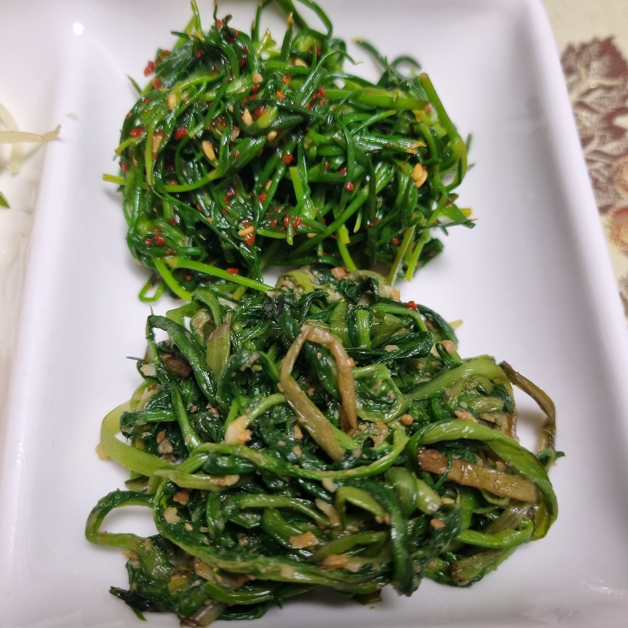 콩나물이나 숙주나물은 많이 해봤지만 원추리와 민들레와 세발나물은 처음이라 블로그 레시피의 도움을 받았다. 레시피를 참고하여 원추리는 고추장 양념, 민들레는 된장 양념, 세발나물은 간장과 고춧가루 양념을 사용해서 무치기로 했다. 흙이 묻은 원추리와 민들레를 깨끗한 물에 열심히 헹구고 세발나물은 흐르는 물에 씻어주고 또 순서대로 데쳐주고 물기를 짜주고. 과정이 번거로웠지만 하나씩 완성해 가는 과정이 재미있었다. 엄마를 기쁘게 해 주려는 요리에 오히려 내가 더 신난 느낌이었다.