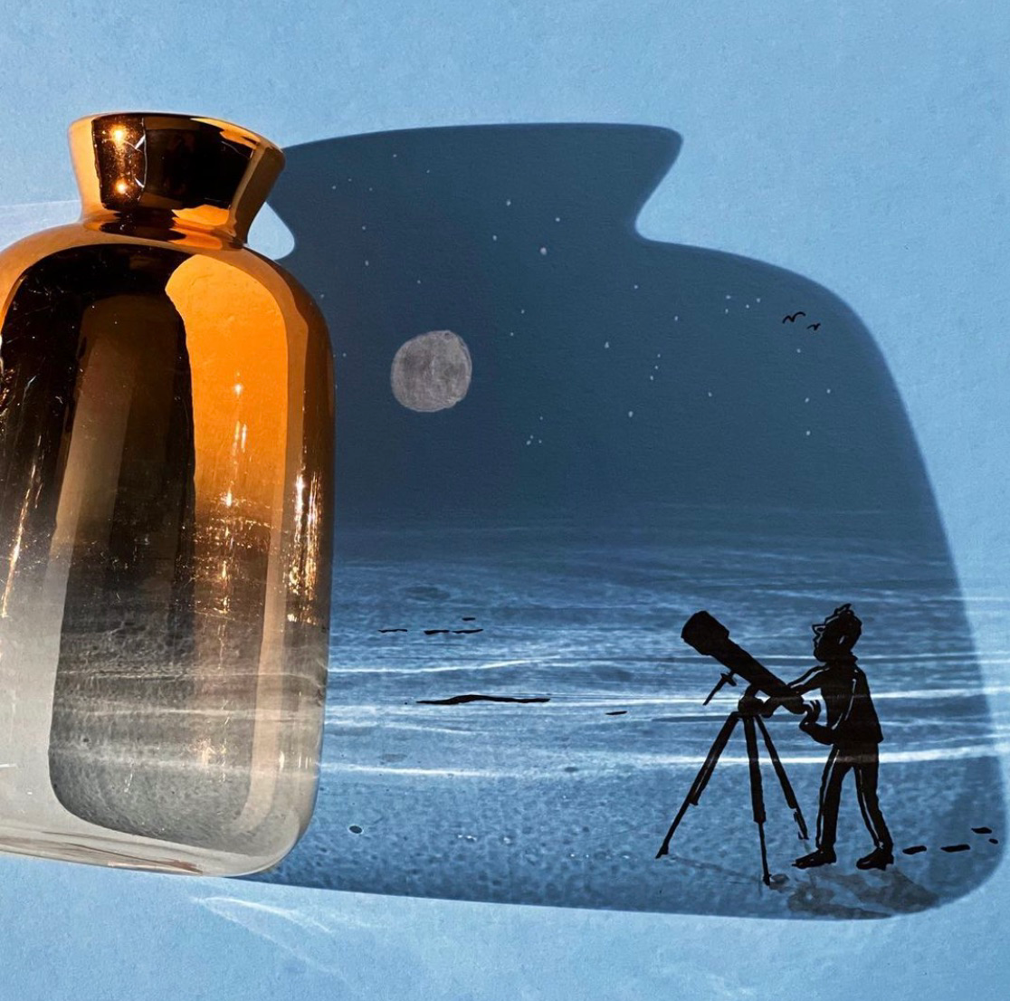 어느 날 시나리오 작업 중 찻잔의 그림자에서 영감을 얻은 코끼리 이미지가 인스타그램에서 반향을 불러오면서 그림자 아트는 우연처럼 시작되었다.