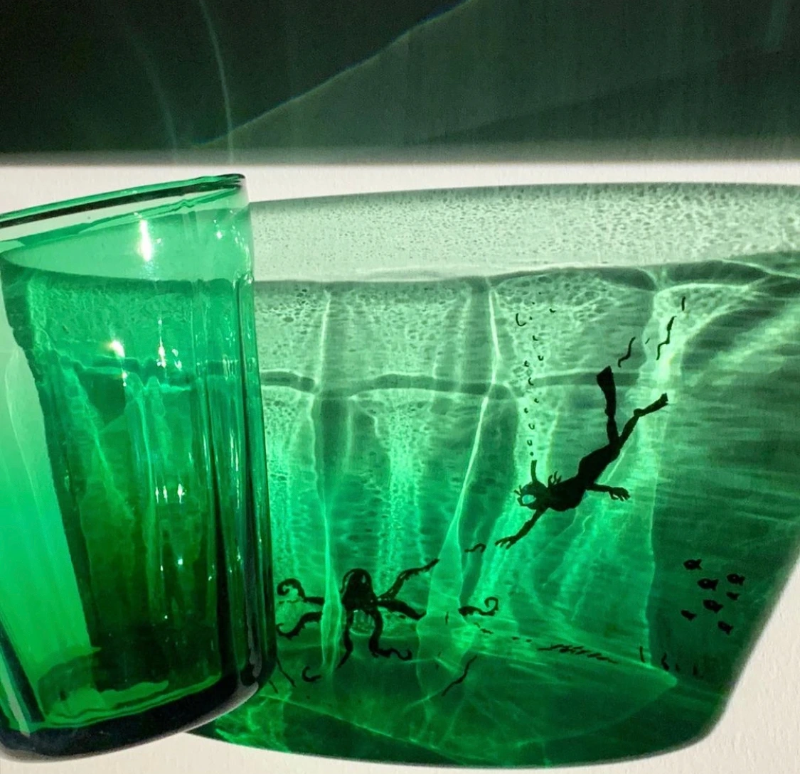 일상의 유리잔은 석양 혹은 다리가 되고, 바다 그리고 하얀 눈밭이 되기도 한다. 물고기의 비늘, 드레스가 되었다가 서커스 무대, 티타임의 따사로운 공간으로도 분한다.