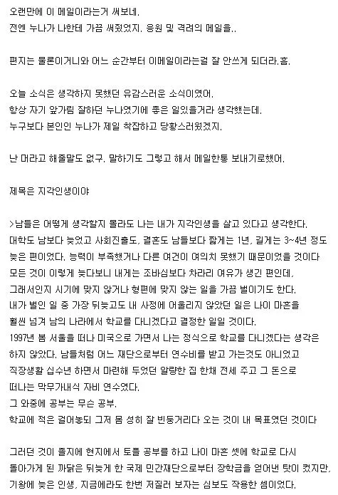 메일의 시기로나마 짐작건대 대학원 졸업 후 적잖이 방황할 때였던 듯 싶다. 실패의 실체는 증발해버렸지만, 뭔가 인생의 쓴 맛을 단단히 맛보았으리라.