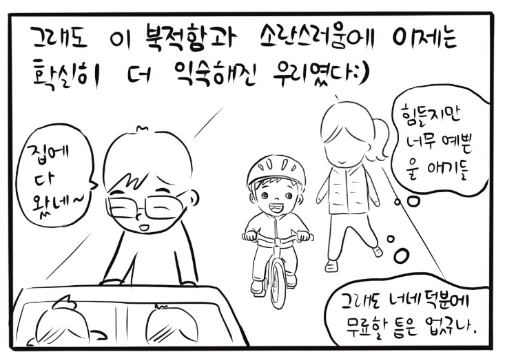 어느덧 만 18개월이 된 아기들은 ’망둥이‘(망나니 쌍둥이)라고 부를 만큼 한창 사건사고가 끊이지 않고 떼도 많아진 시기를 지나고 있다. 다섯 살 첫째는 의젓함과 퇴행 사이를 오가며 마음이 많이 쓰이게 만드는 중이다. 어쩌면 내 인생 가장 북적이고 정신 없는 카오스의 시기일지도 모를 날들을 지나고 있지만, 강렬했던 시간일수록 지나고나면 더 깊은 추억이 되기도 하고 심지워 그리워지기까지 하는 모순이 있다고 하지 않던가. 그러니, 비록 평온과는 거리가 먼, 무료할 틈 없는 하루하루이지만 이 익숙한 소란을 되도록 누리고 만끽하며 지내려 하고 있다