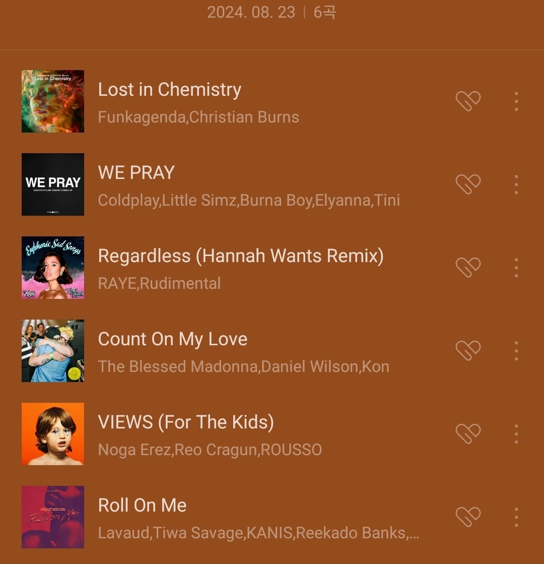 퇴근길 멀티프로필에 깔은 음악들. 2024.8.23.
