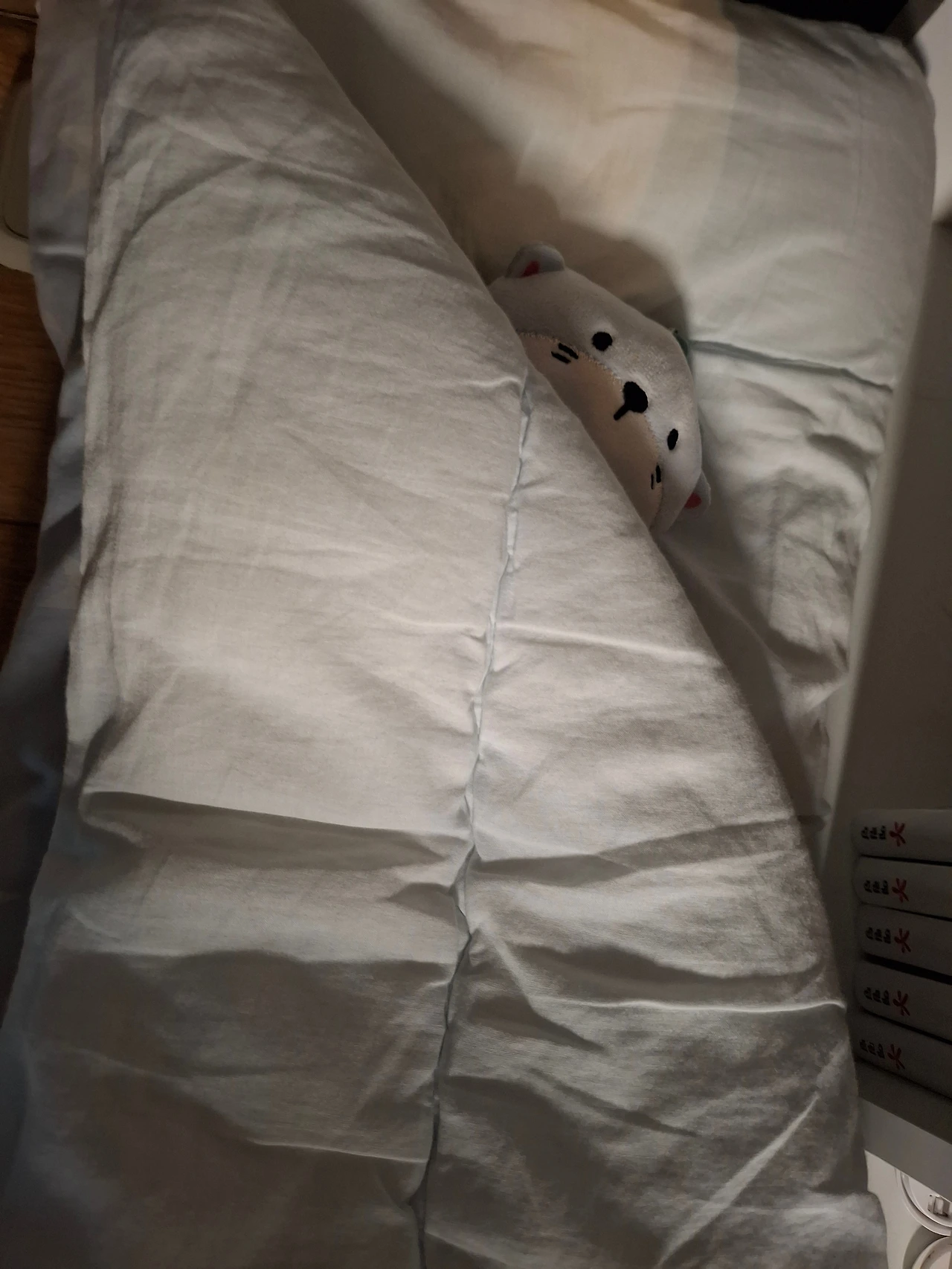 늦은 밤 아이는 자기 옆에 수달이를 재웠다.