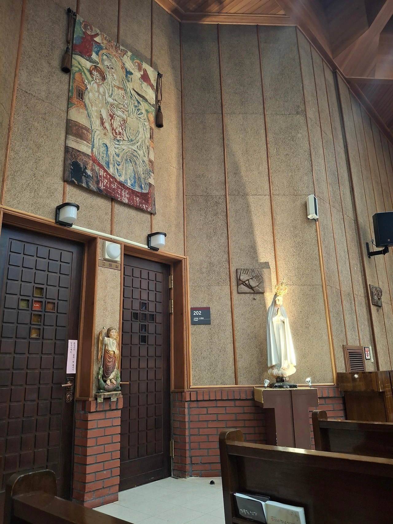 오늘은 성모상 가까이에 앉고 싶어