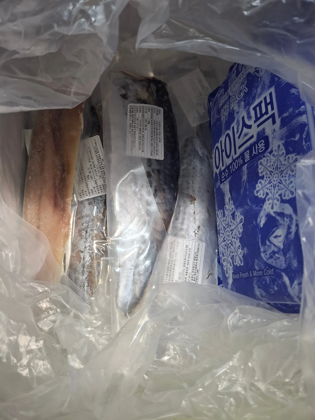 냉동실에 손질된 순살 고등어 냉동팩이 있다.