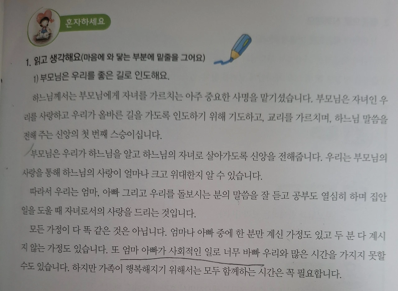 하느님께서는 부모님에게 자녀를 가르치는 아주 중요한 사명을 맡기셨습니다. 부모님은 자녀인 우리를 사랑하고 우리가 올바른 길을 가도록 (중략)