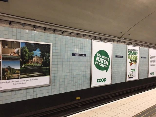 스톡홀름 시립 도서관에서 나와 정처없이 거닐다 찾게된 가까운 역 - 오덴플란(ODENPLAN) 역. 예상보다 깨끗하고 잘 정돈돼 있는 지하철역 공간도 참 좋았지만, Simple & Deep의 정수를 보여주는 듯한 광고와 벽 타일에 촉이 세워진다. 작은 것에서부터 보이지 않는 것까지 모든 감각을 총동원하게 만드는 이 도시의 매력. 좋은 디자인은 사람을 향할 때 나오는 게 아닐까. 스톡홀름이 몸소 실천하고 있는 것 같았다. 디자인 강국이란 건 다시 말하면 사람이 우선인 도시란 것이겠지.