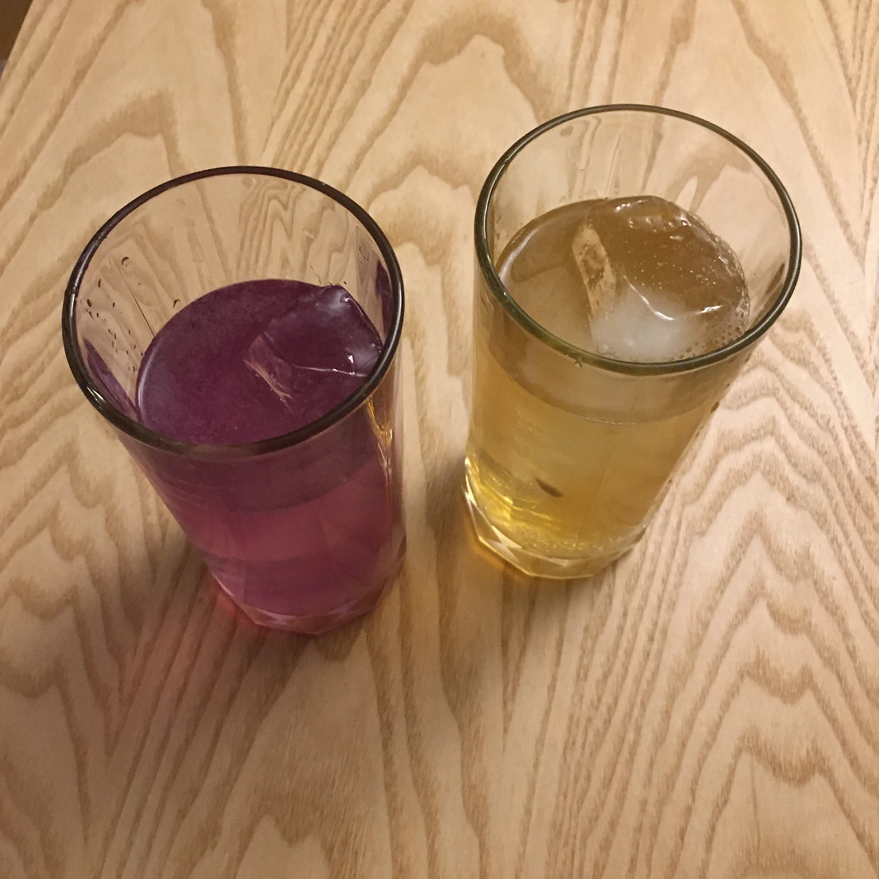 1 이토록 아름다운 진토닉이라니. Can you believe this? 그가 버터플라이 피 찻잎으로 봄베이 사파이어를 인퓨징 했다. 그 인퓨징 한 컬러는 블루였는데 레몬즙을 뿌리니 이렇게 오묘하고도 아름다운 보라색이 되었다. 그렇다면 노란색의 비밀은? 진저비어다.