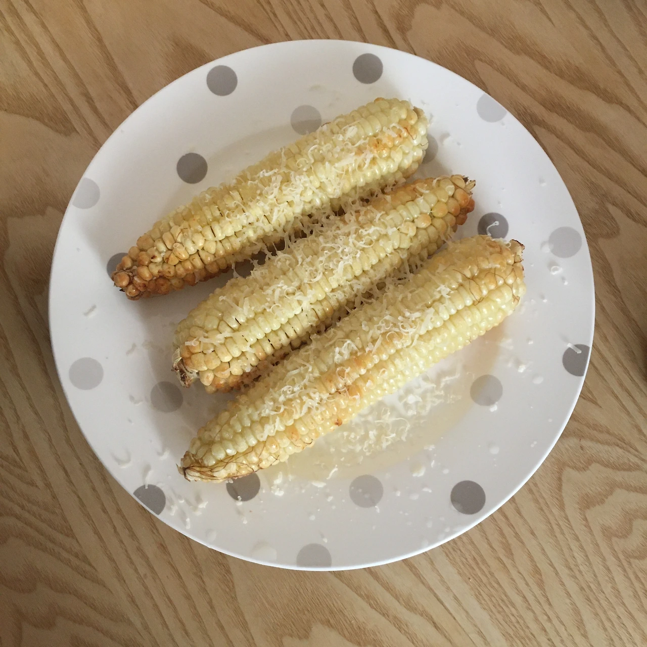 2 냉동고에 저장해두었던 옥수수에 기버터를 치덕치덕 발라 에어프라이어 180도에 15분 굽고 뒤집어 5분 더 구웠다. 노릇해진 옥수수에 레몬즙을 뿌리고 그라나 파다노 치즈를 그레이팅 해 뿌려주었다. OMG JMT.