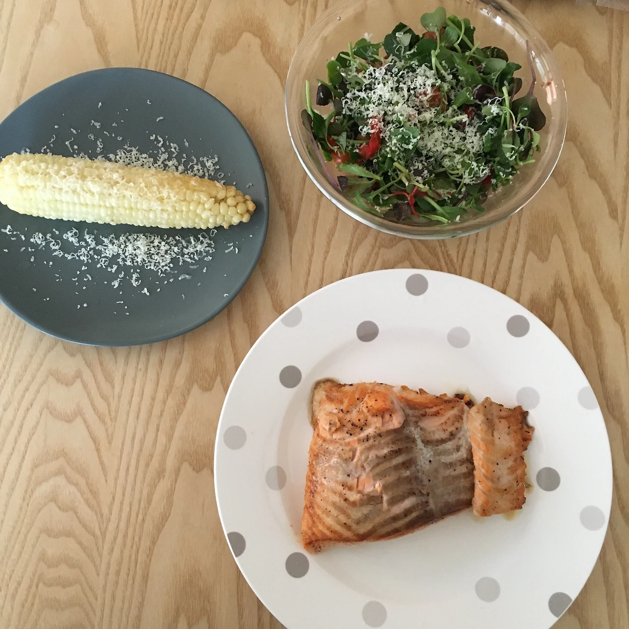 1 로즈메리가 없어 아쉽지만 월계수 잎으로 대신해본다. 비린내를 잡아 주기엔 충분했다. 올리브 오일, 소금, 후추, 레몬즙이면 연어는 부족할 게 없는 스테이크로 변신.