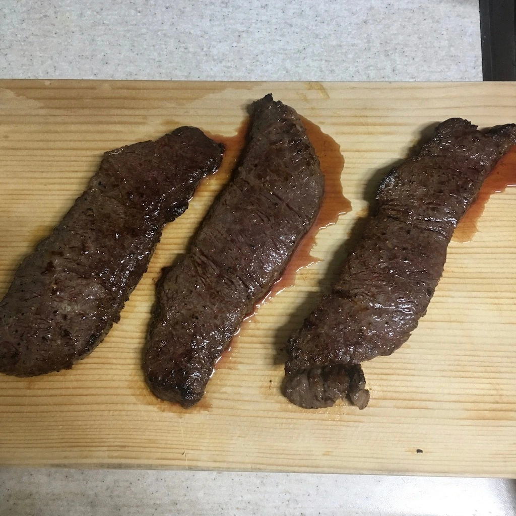 1 그에게는 '스테이크 천재'라는 내가 붙여준 별명이 있다. 미국산 살치살이 나무 도마 위에서 레스팅 중인 듯.