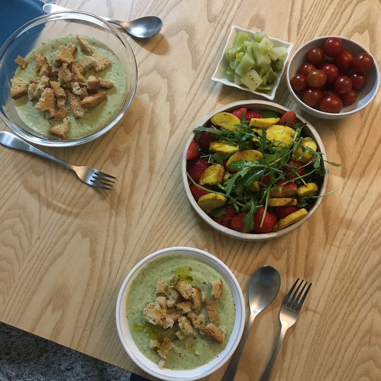 완연한 봄날의 연속인가 싶더니 갑작스레 기온이 떨어지고 찬바람이 불었던 날이 있다. 따스한 수프가 생각났다. 이번엔 나 혼자 실력 발휘할 차례. 요리하는 비율이 7:3으로 압도적으로 그가 높기 때문에 이날만큼은 큰 맘먹고 풀 서비스를 했다. 설거지 거리가 엄청났지만 그래도 그가 맛있게 순삭 해주어 행복했다(설거지는 그가 한 거 안비밀).