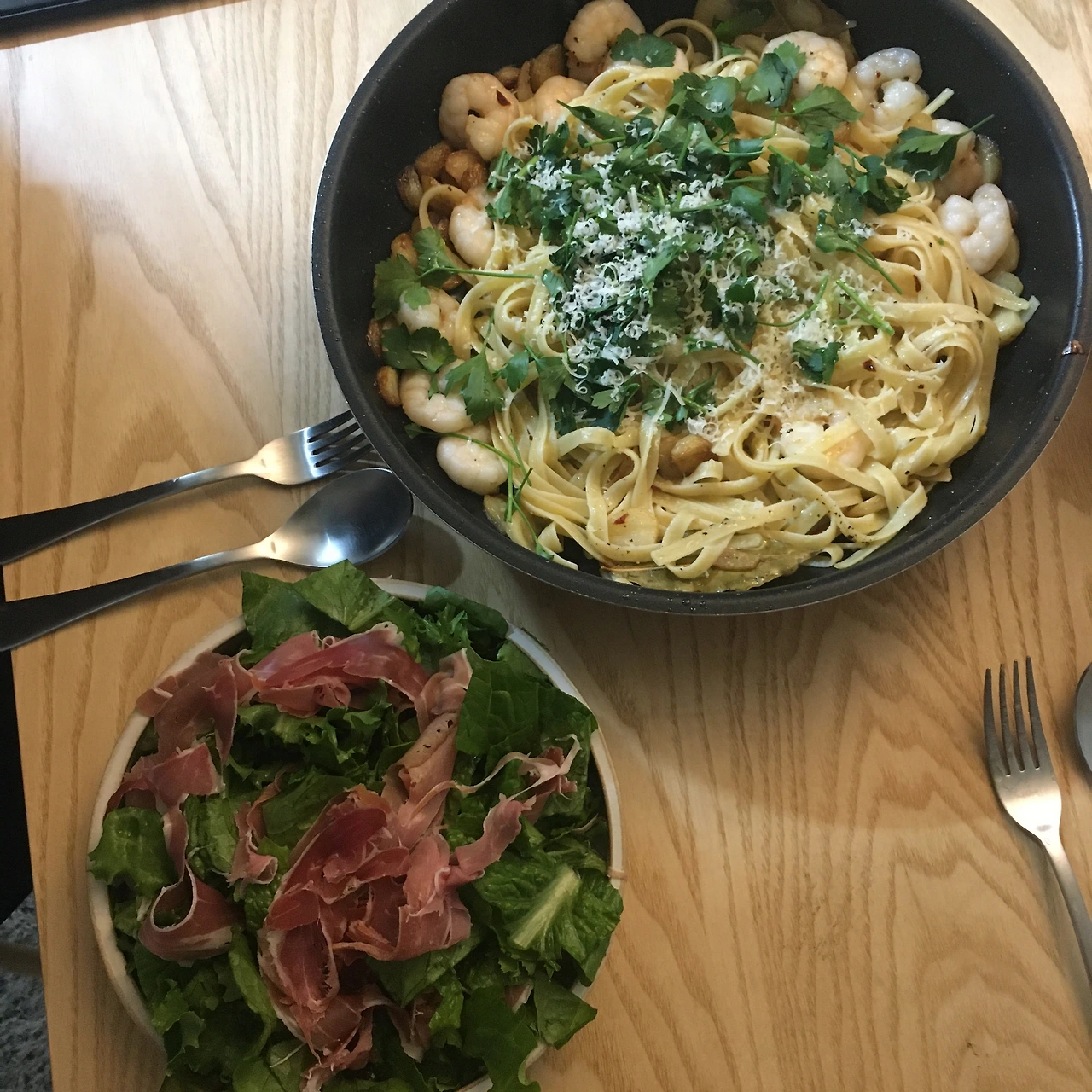1 페투치니 면으로 하는 알리오 올리오. 제법 괜찮다, 맛있다! 올리브 오일+마늘 조합에 월계수 잎도 투척했다. 페페론치노 가루도 흩뿌리니 은은한 매콤함이 매력적이더이다. 화이트 와인이 없어 보드카로 대신. 정말 오랜만에 플람베 성공했던 날인데 나만 보자니 아쉬웠던 그런 날. 이탈리안 파슬리와 그라나 파다노 치즈 얹어 완성. 역시 꿀맛. 그리고 곁들인 하몽 샐러드. 한 거라곤 야채 씻고 하몽 올리고.