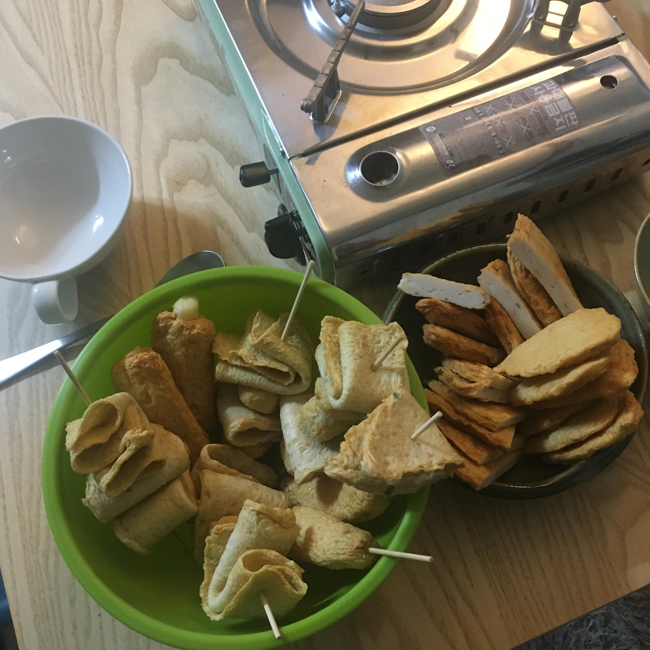 어묵탕에 꽂힌 날도 있었다. 내가 한 거라곤 꼬치에 어묵 끼우기. 정성스러운 가쓰오부시 육수 담당은 그가. 사케가 생각났던 어느 날 저녁.