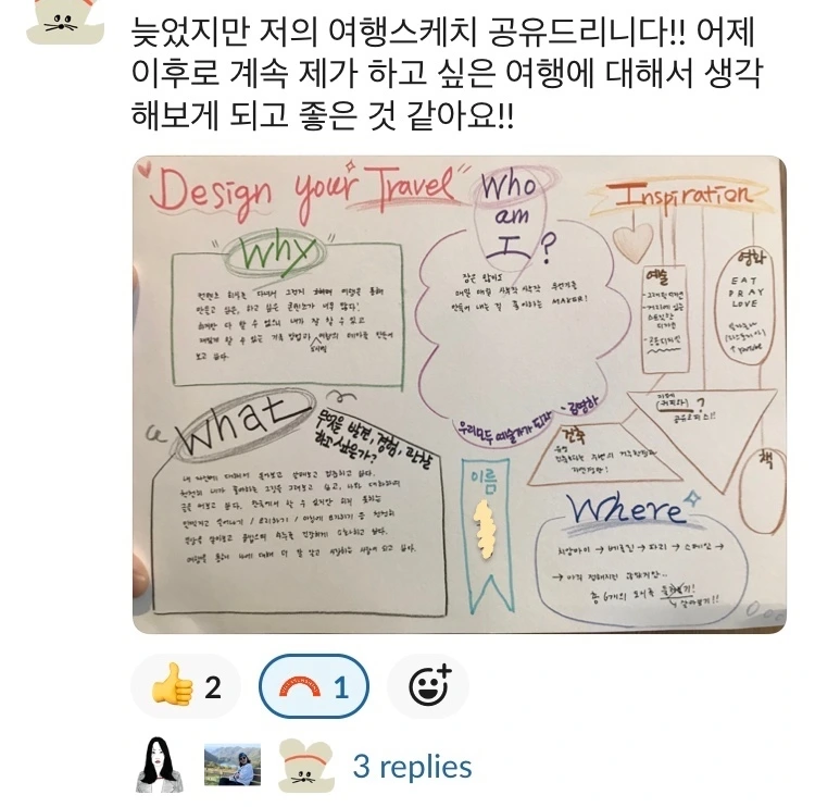 - 여행을 풍요롭게 하기 위한 모든 것을 나누며 insight를 주고받고 새로운 여행 디자인에 반영해보기 위해