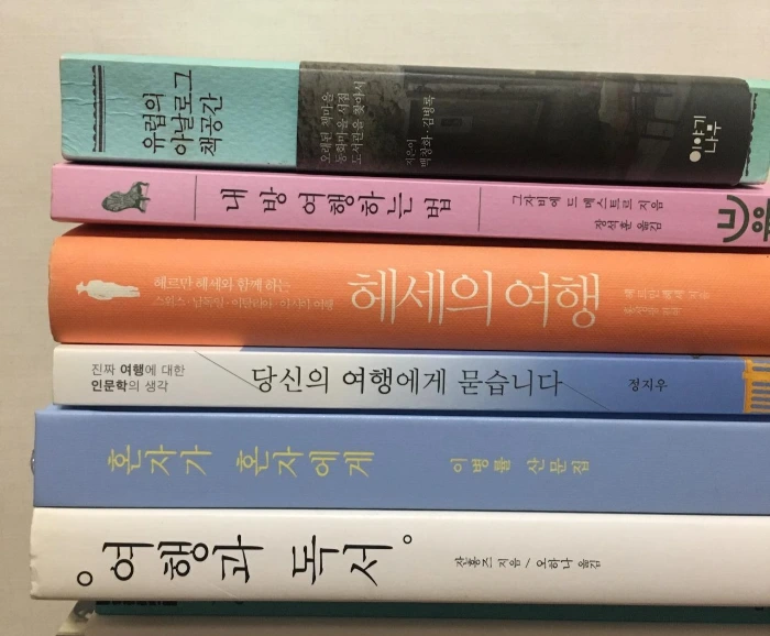 저마다의 개성을 지닌 멤버들의 저마다의 각양각색 여행 템플릿. 첫 만남에서 아날로그로 작성해본 템플릿은 슬랙에서 사진으로 다시 공유해 서로가 볼 수 있도록 했다. 서로에게 영감을 주거나 취향이 겹치는 부분 등이 있어 우리들 간의 크고 작은 연결은 계속되었다고나 할까. 이렇게 피날레를 장식하고 이후의 만남을 기대하며 마무리를 하려던 찰나 마지막 막간의 틈을 활용해 이후의 활동 중 하나를 예고했다. 그것은 다름 아닌 마지막 오프라인 만남에서 가질 클럽 속의 클럽 <미니 북클럽>을 위한 책 목록을 소개한 것. 지난 몇 년 간 방구석에서, 여행지에서, 오고 가는 이동 중 읽으며 밑줄을 긋고 귀퉁이를 접으며 영감을 받았던 책들 중 몇 권을 직접 골라 보았고 멤버들에게 짧게 소개하는 시간을 가졌다. 이후 슬랙에서 투표 방식으로 한 권을 선정하기로 정해 보았는데 결과를 예측해보는 것도 이후 시간을 위한 깨알 재미가 되었다랄까.