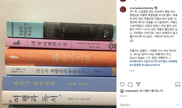 투표에 부친 결과 클럽 속의 클럽 우리들만의 '북클럽' 도서는 잔홍즈의 '여행과 독서'로 선정되었다. 어떤 책으로 정해져도 재밌을 것이란 확신이 들어서였나 조금도 이상할 게 없던 결과였던 것. 잔홍즈는 말했다. '여행은 서서 하는 독서이고, 독서는 앉아서 하는 여행이다'라고. 여행과 독서, 과연 떼려야 뗄 수 있는 것일까? 자신만의 방식으로 책과의 만남을 가진 우리는 함께 모여 각자의 소감과 읽으면서 느낀 주된 감정, 그리고 나만의 밑줄을 나눴다. 그의 여행은 워낙 흥미롭기도 하고 특이한 구석이 있는 데다가 '책'이 매 여행마다 주인공이기 때문에 우리들의 나눔 마저 웃음이 끊이지 않는 이야기 파티가 되었다. 아, 정말 여행이여!