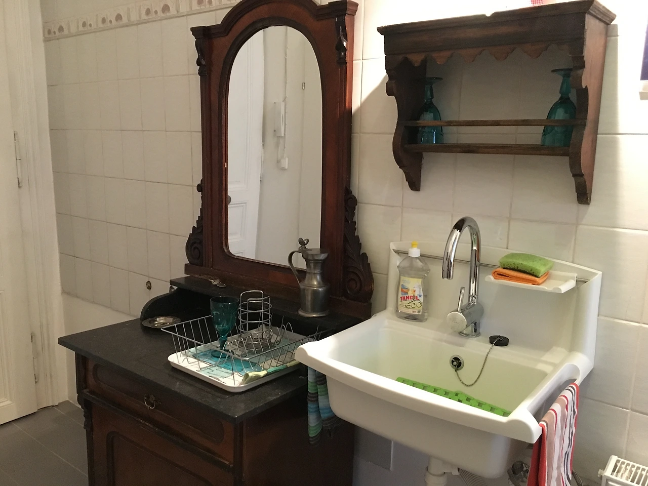 빈에서 머무를 때는 위층이 집이라는 이네스. 아, 그는 너무나 비엔나스러운 비에니즈가 아니던가 싶어 물었는데 본래 잘츠부르크(Salzburg) 태생이고 빈에서 오래 살았지만 지금은 잘츠부르크가 본거지라고 한다. 오스트리아의 가장 멋진 두 도시 아니던가. 그는 두 도시를 오랜 시간 거하고 오가며 온갖 매력이란 매력은 다 수혈받은 것인가 보다. 농익은 내 설렘이 빼죽이 내밀려 나올 즈음 그가 둔턱한 열쇠로 문을 연다. 저 안쪽 공간으로 새어 들어온 햇살이 어여쁘다. 들어서려니 오른편에 귀여운 욕실이 숨겨진 듯 자리하고 있고, 마주 보이는 흰 벽과 흰 타일 바닥이 마치 나는 키친이다라는 외침을 하듯 선명하다. 여전히 우리네 부엌이란 곳은 아날로그의 모습을 역력히 띠고 있지만 이곳은 오랜 세월을 머금은 아날로그랄까. 그 세월의 흔적이 곳곳에 묻어난다. 붉은빛을 머금은 갈색 원목가구가 하얗디 하얀 공간에 차분한 무게를 실어준다. 있어야 할 모든 게 있다. 더 있었다면 번잡했을 것이고 덜 있었다면 서운했을 것인데 그렇지가 않다. 머무는 동안 하나씩 찬찬히 음미하고 즐기라며 마치 내게 딱 맞는 것들로 나를 잘 아는 누군가가 채워주고 간 느낌. 만족감과 익숙함이 뒤섞여 성급하게 솟아오른다. 뭐 아무렴 어때, 란 생각에 작정하고 흥분하기로 한다.