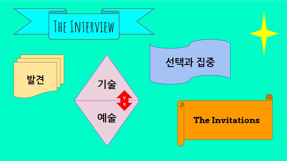 전 예술이라고 생각해요. 답이 없으니까요. 면접 자체도 마치 예술 활동 같지만, 우리가 예술로 만들 수도 있어요. 면접에 어떤 태도로 임할지, 어떤 준비를 어떻게 얼마큼 할지는 전적으로 내 선택에 달려있지요. 면접의 처음에서부터 끝까지의 과정은 그야말로 선택과 집중의 반복 아닐까요? 할 말과 하지 않아야 할 말에 대한 분별, 포기할 것은 주저하지 않고 즉각 포기해보는 경험, 적절한 시간과 에너지 안배, 말과 행동의 여백, 스스로에게 느끼는 여유와 미소 깃든 상황에 대한 통제감과 잊히지 않을 여운을 남기고 유유히 떠나는 것이야말로 예술이 아니라면 무엇이냔 말이죠. 면접이 예술이 되려면 효과적인 기술이 필요할 수 있으니 물론 그 기술을 연마하는 면접 준비 단계도 성실해야겠지요? 연재 동안 면접 준비 과정을 세세하게 다뤄보도록 할게요.