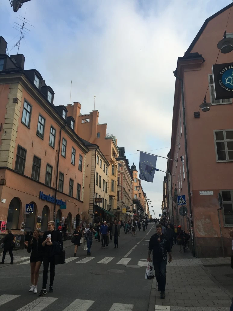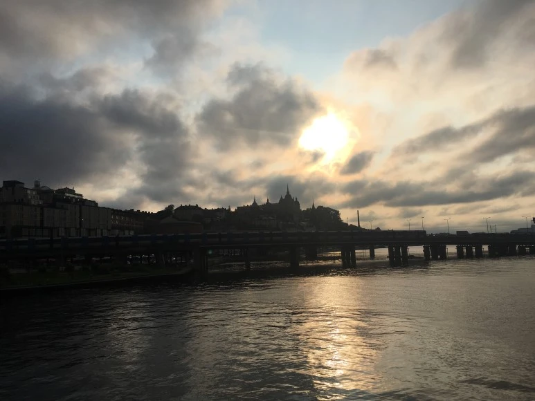 해질녁 하늘과 구름과 태양이 장관을 만들어 준다. 선선한 바람 벗삼아 서서히 걸어 감라스탄을 빠져 나와 Slussen(슬루센) 역으로 향했다. 이제는 낯섦과 익숙함의 사이로 느껴지는 도시 스톡홀름을 걷는 것이 마치 나의 일상인 듯 느끼게 되는 게 잠시나마 참으로 행복했다. 퇴근길 인파 가운데로 살며시 끼어들어 여유로이 걷고 있던 우리가 참 좋았다.