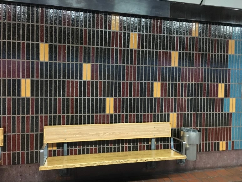 Jona언니의 Airbnb place로 점심 초대를 받은 날! 서둘러 지하철을 타고 Norra Järngraven(노라 예릉라벤) 역으로 향했다. 살포시 내려 마주한 벽. 타일 컬러의 조합이 꽤 멋지다.