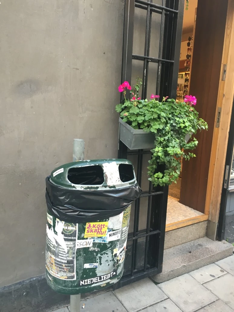 쓰레기통과 꽃화분. So Cool, isn't it?!! :)