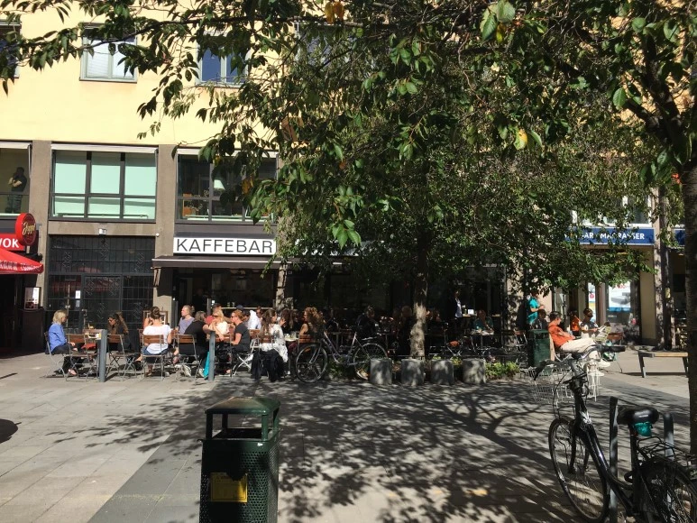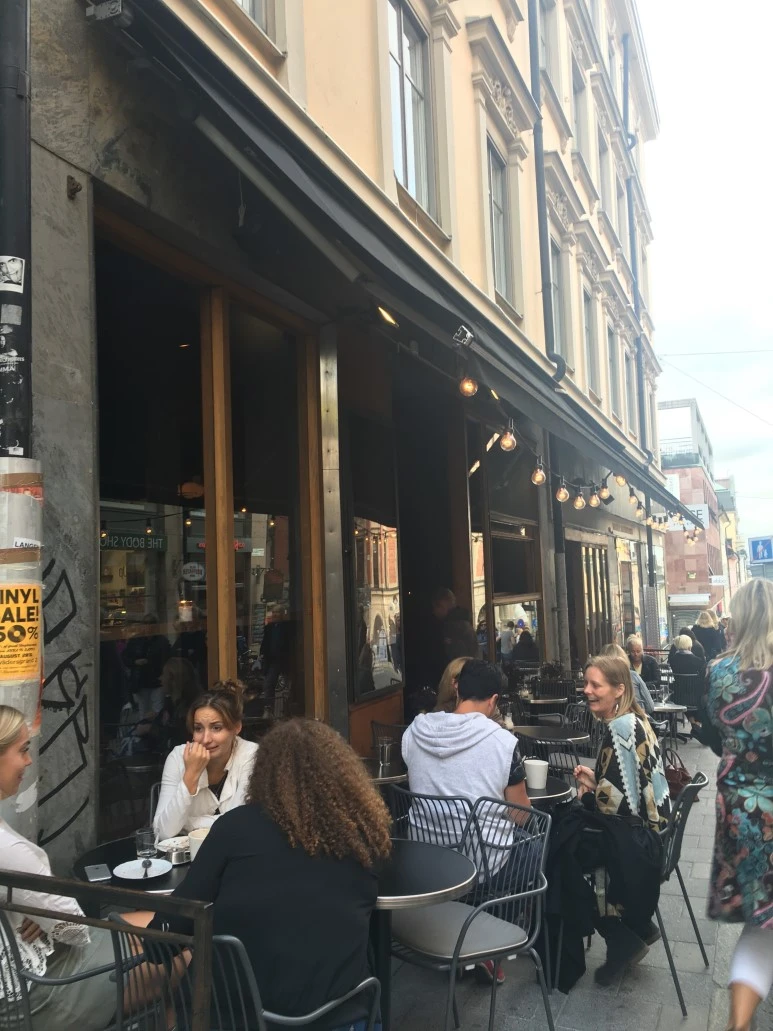한가로이 커피를 즐기는 동네 사람들. Hej! 외치며 인사 건넬 뻔 ^^ 꼭 와보려 리스트업 해두었던 카페 KAFFEBAR를 이렇게 우연히 지나가게 되다니! 더욱 반가웠다. 모닝 커피를 이미 한지라 아쉬움 남기며 발걸음을 옮겼다. 이 사진은 후에 꼭 엽서로 만들어야지, 라고 생각했었는데... 도시가 그리운 만큼 이름모를 저 스톡홀르머들도 왠지 그립다.