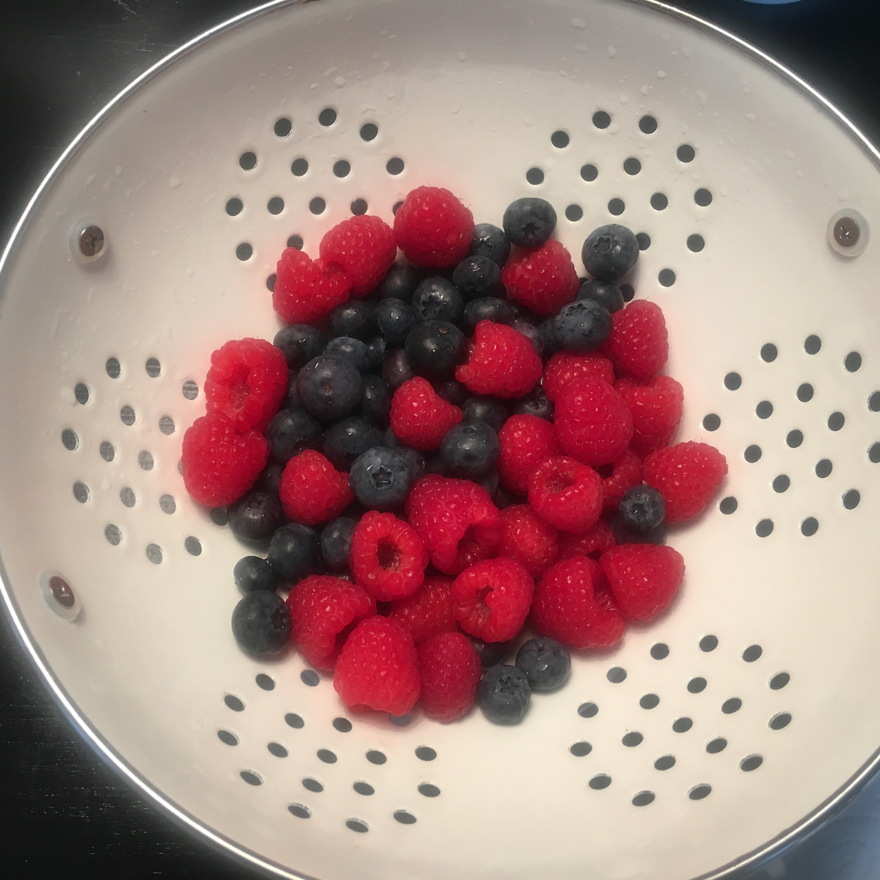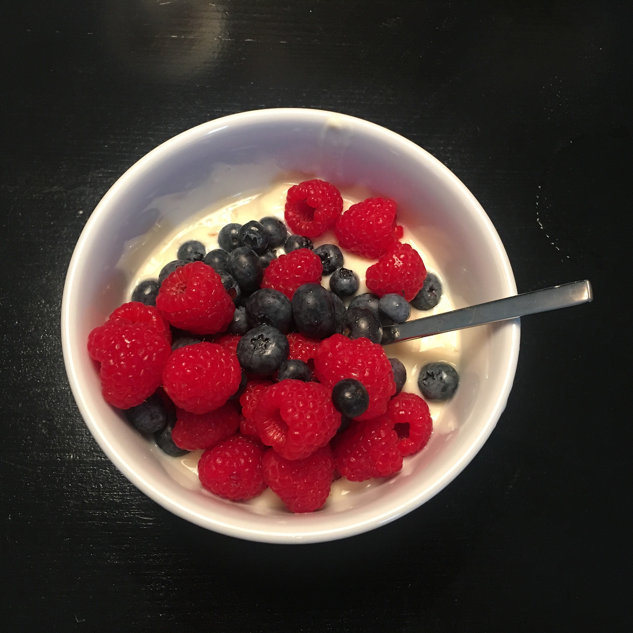 너무나 싱싱해보였던, 먹음직스런 라즈베리와 블루베리를 요거트에 퐁당.