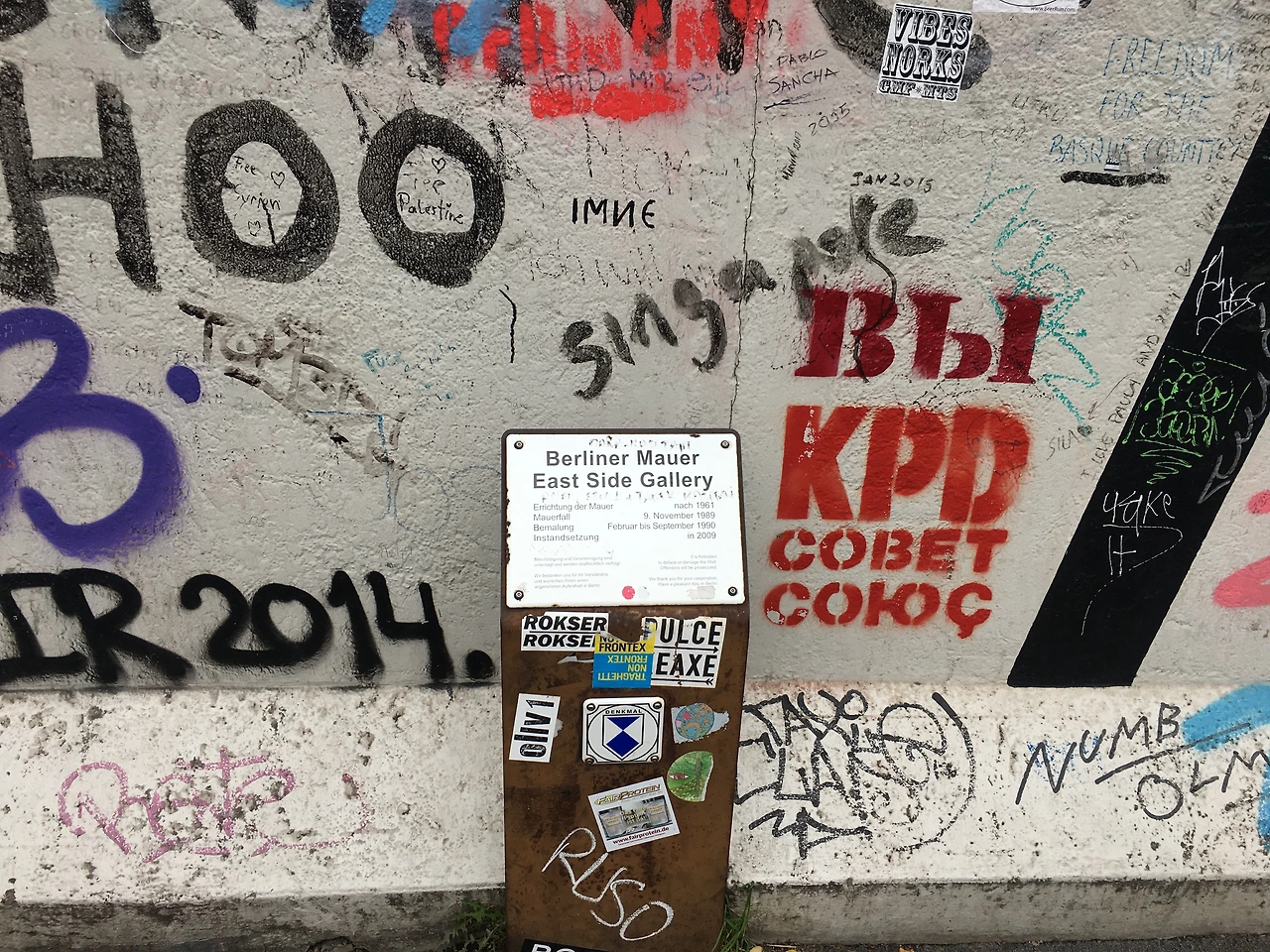 몇몇 작품들이 세월과 비로 인해 침식되기도 하고, 낙서로 훼손이 된 부분도 많아, 여전히 복원 작업이 진행중이라고 하는데... 장벽이 무너짐으로써 베를린이 겪어야 했던 많은 진통을 이 곳 갤러리가 대신해 짊어지고 가고 있는 걸까. 복원 작업도 보존도 모두 잘 이루어지기를 바래본다.