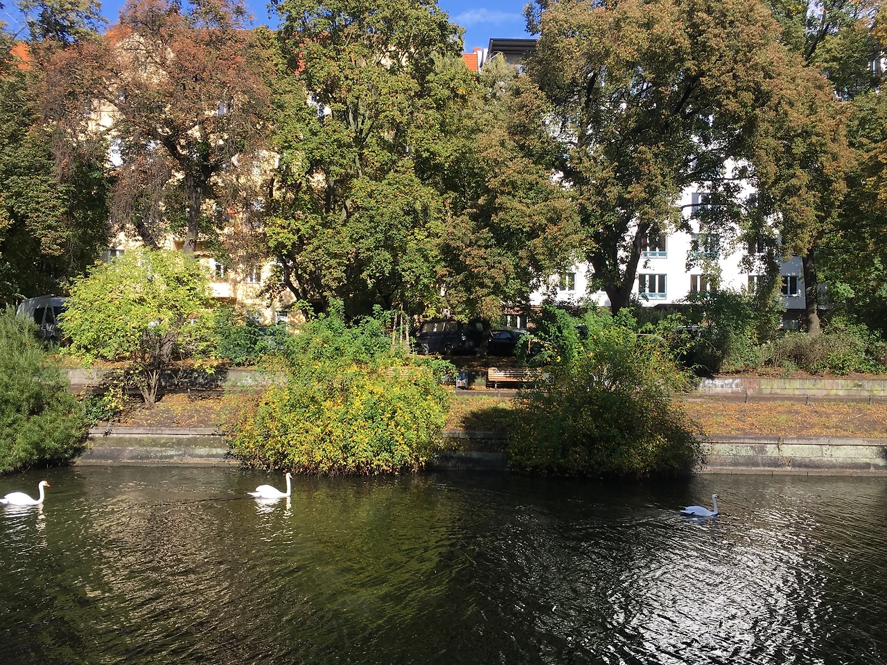 고르키(Gorki)에 머무를 때에 호텔 직원이 추천해주었던 산책길이다. 간헐적으로 날이 좋을 때엔 운하(Landwehr Canal) 곁 길에 플리 마켓이 열리기도 하는 곳이라며 애정어린 제안을 건네던 그 선한 눈빛을 여전히 기억한다. 마침 향했던 날은 국경일이라 마켓은 열리지 않았지만 강렬한 태양이 뜨겁게 환영해주었다. 나이가 가늠이 되지 않는 나무들은 아름답기 그지 없고, 우아하게 물결을 가르던 백조 패밀리는 경치에 운치를 한껏 더해주었다.