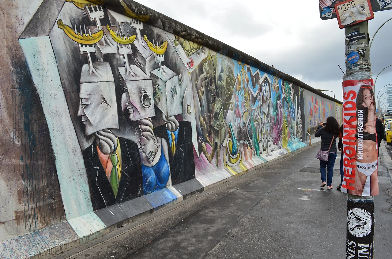세계에서 가장 긴, 그리고 가장 오래된 야외 갤러리, 이스트 사이드 갤러리로 부러 향했다.